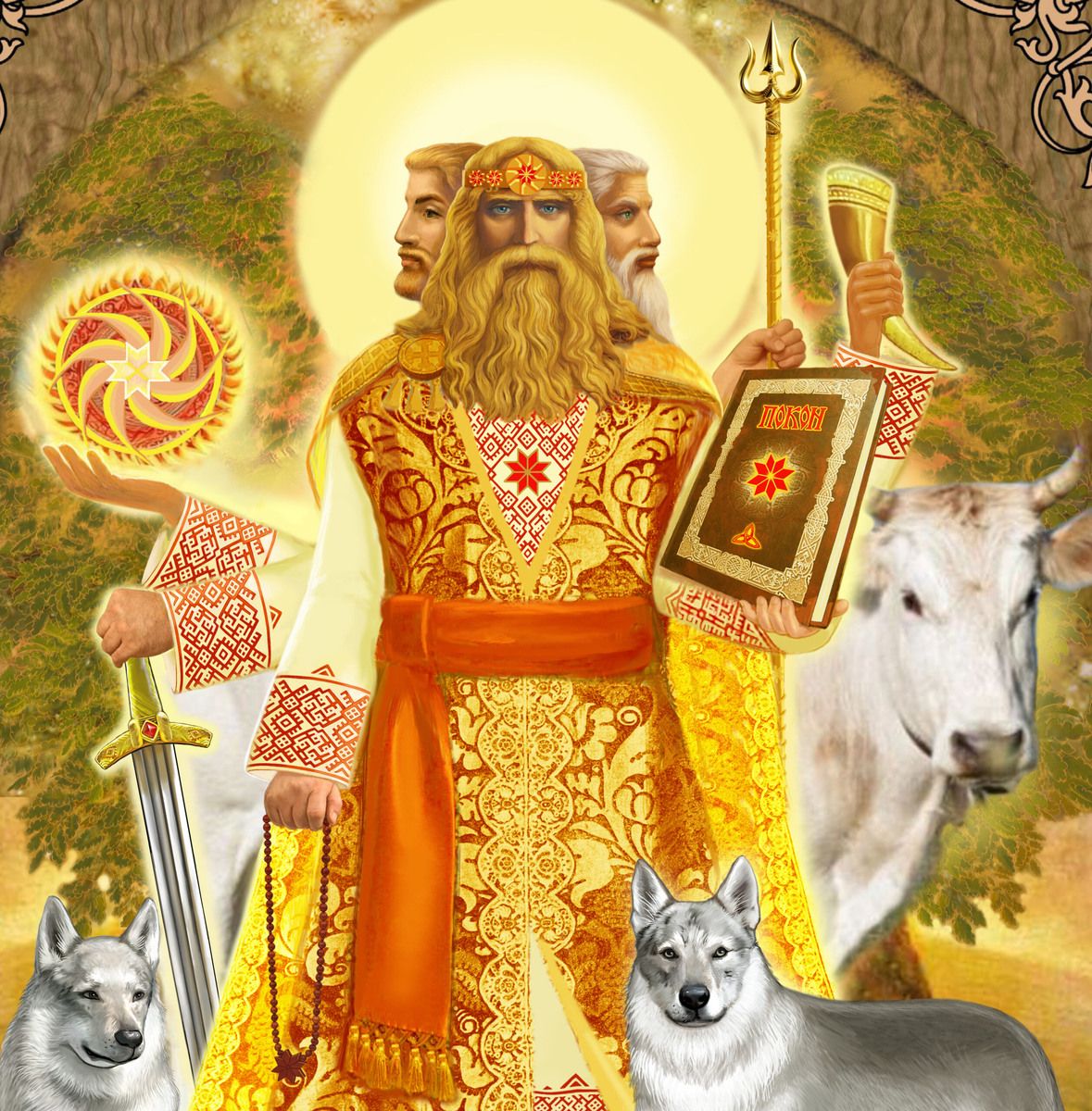22 мая Персонаж славянской мифологии этой недели - Троян/Триглав! ------------------------------------------------------------ В конце мая славяне прощались с Ярилой – весенним Солнцем и славили трёх летних богов Сварожьего Триглава, сильных в Прави, Нави и Яви: Сварога, Перуна и Велеса. Святодень, посвящённый победе бога Трояна над Чёрным Змеем, это также Духов День. Триглав олицетворяет пространство, в котором находится и живет человек. Человеку даётся свобода воли и возможность самому выбирать свой путь - правильный или неправильный. В результате этого пути человек нарабатывает себе соответствующую духовную карму: совокупность своих хороших и плохих дел. Карма сопровождает душу человека и при жизни на земле и после смерти на земле и при жизни в других мирах. От того, какую карму человек себе наработал, зависит и его жизнь на земле, и его жизни в будущем, и жизни его потомков. Карма выражает закон причинно-следственной связи, основная идея которого выражается в словах «что посеешь, то и пожнешь». Закон кармы - это закон возмездия и воздаяния. Но это не означает, что человека накажут - просто он будете проходить один и тот же урок, пока не усвоит. Однажды Велес спустился на землю, чтобы походить среди людей и узнать, в чём они нуждаются, как живут. В одной из деревень странника пустили переночевать к себе семеро братьев. Хозяюшкой у них в доме сестра. Велес влюбился в неё - к счастью, взаимно, и вскоре они сыграли свадьбу. У пары родилось трое детей: две девочки и мальчик. Он был последним, поэтому его назвали «Троян». Вскоре Велесу потребовалось вернуться в верхний мир богов, и ему пришлось рассказать жене правду о себе. Велес забрал с собой сына - любознательного и вдумчивого мальчика, которого отдал в ученики к мудрому кентавру Китоврасу. Однажды Троян, собирая целебные травы по совету наставника, увидел, как одна змея воскресила из мертвых другую при помощи волшебного цветка. Он решил использовать это растение и стал спасать людей. Но его действия нарушали равновесие между миром живых и мертвых. Поэтому верховные боги запретили целителю оживлять, но подарили посох, обвитый змеей - как символ его глубоких познаний и отправили на землю: продлевать людскую жизнь, обучать ведунов мазям и настойкам из природных компонентов. Троян - добрый бог, способный хорошо относиться даже к тем людям, которые сами в себя допустили недуг. Троян готов всякого человека научить не только исцелению от хвори, но и тому, как хвори избежать, как не пустить ее в организм. Надо только уметь слушать советы Трояна, которые можно найти в откровениях этого бога. Главный же совет, который Троян старается дать всякому человеку, основывается на специфике стихии огня. Дело в том, что огонь, как заметили еще наши предки, их всех стихий является самой подвижной. Потому Троян и считает, что главный жизненный девиз всякого человека, желающего быть здоровым, это: «В движении жизнь!» Двигайтесь во времени и в пространстве, которым покровительствует бог здоровья Троян, и это принесет вам долгие годы жизни без хворей и недугов. В первую очередь Троян защищает всех целителей, знахарей и прочих врачевателей. Единственным условием является честность и скромность мастера. Людей, которые в корыстных целях продают свои снадобья-пустышки или кичатся своими достижениями, ждет наказание. А ещё Троян - покровитель лю