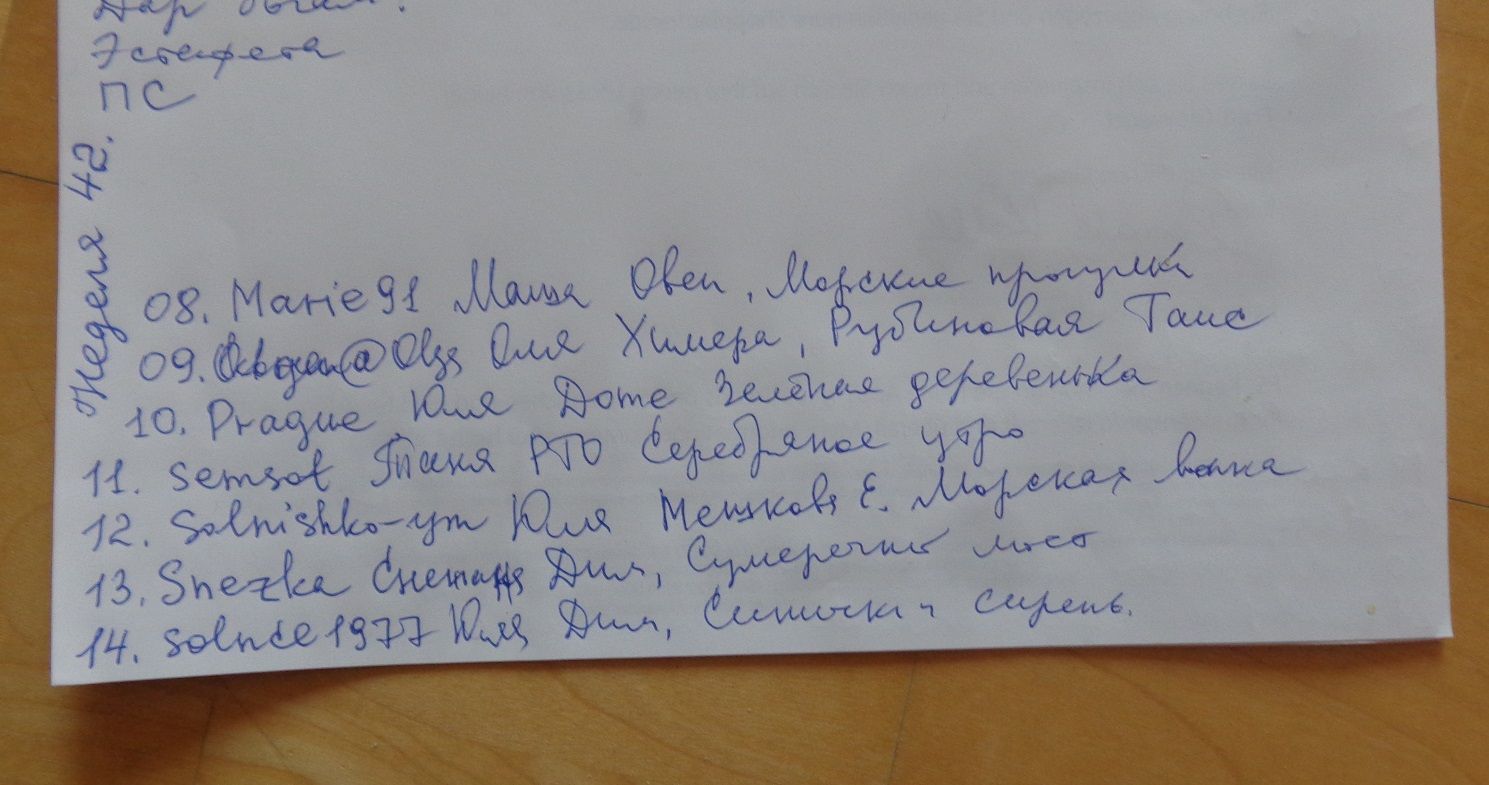 17 июня 1 час назад, Leutnant Ripley сказал(а): Эстафета !!! @Snezka Снежана, ДИМ, Сумеречный мост Прости, пожалуйста)) перепечатывала черновик невнимательно, аврал на работе Выбрала, записала, ненапечатала. Вот я даю)) Подняла "документ" : Оля, как у тебя все серьезно, с рукописным черновиком... Прям основательно. А меня бесит, когда Оля регулярно мне выбирает в эстафете Новогодний трамвай. Прям бесит Но одновременно я прекрасно понимаю, что если она мне его не назначит, я его добровольно в руки не возьму, а хотелось бы вышить его хоть лет за 10. Поэтому благодарна Ольге за этот выбор Вообще интересно, кто чем руководствуется при выборе эстафеты. У меня процессов много, и в эстафете каждый раз разное попадается. А что-то вообще никогда)) Catopuma, Ксен40, PrimaN и 6 других сказали спасибо Поделиться сообщением Ссылка на сообщение