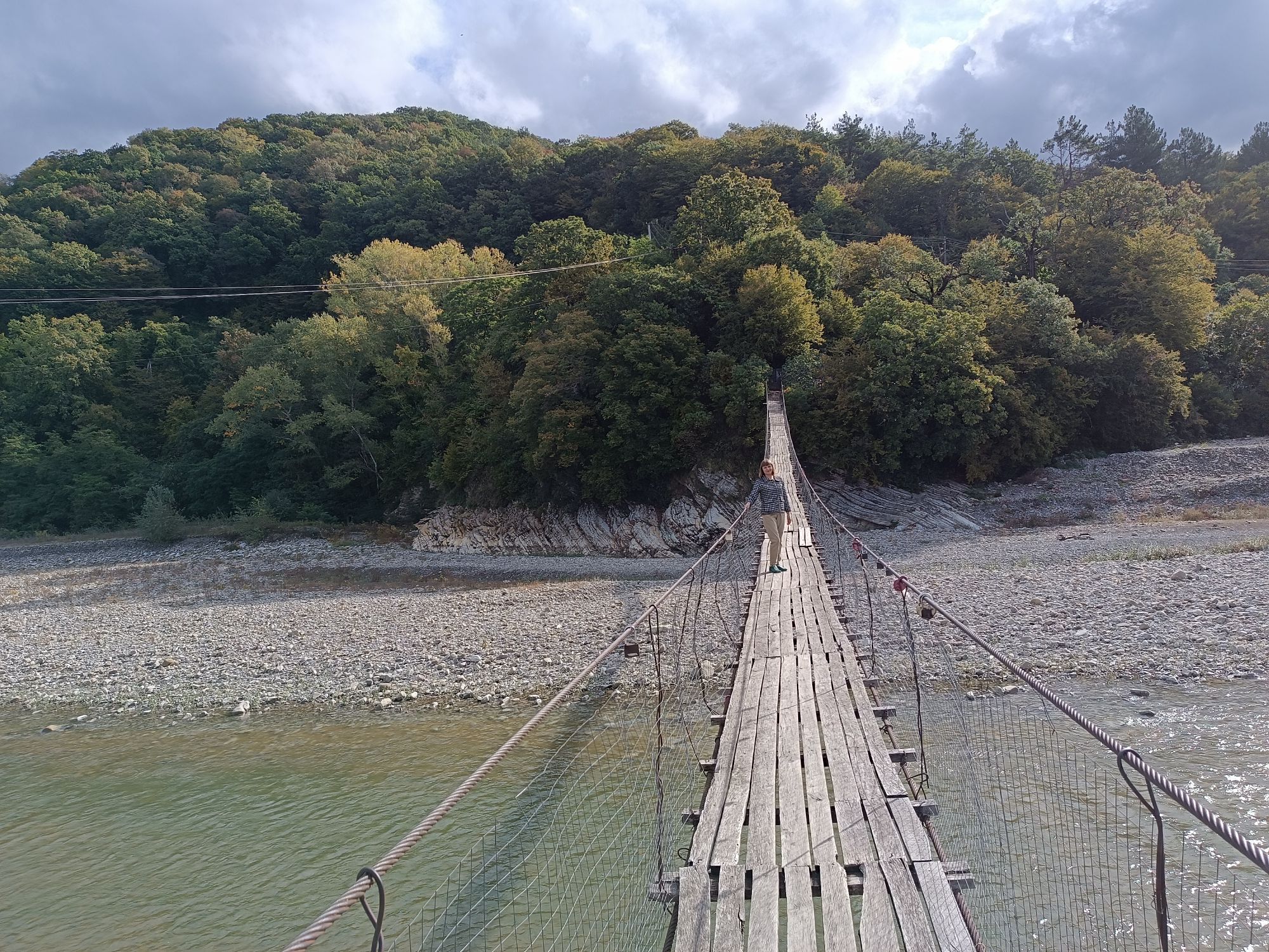 15 октября 2024 А я пока забросила вышивку, в отпуске пока что не до неё. Гуляем с мамой в Лазаревском. Сейчас похвастаюсь немного. Гуляли вчера у речки Псезуапсе , хотела дойти до конца мостика, но мама не пустила))), боится. Мостик хороший, крепкий, хоть и подвесной,но, конечно же, шатается. Море отдельно от себя не фотографировала, оно штормило очень. Правда, есть видео, но мы там так смешно болтали, если хотите, могу загрузить, чисто поржать и посмотреть на шторм. lamina-65, Кисуля, Leutnant Ripley и 8 других сказали спасибо Поделиться сообщением Ссылка на сообщение
