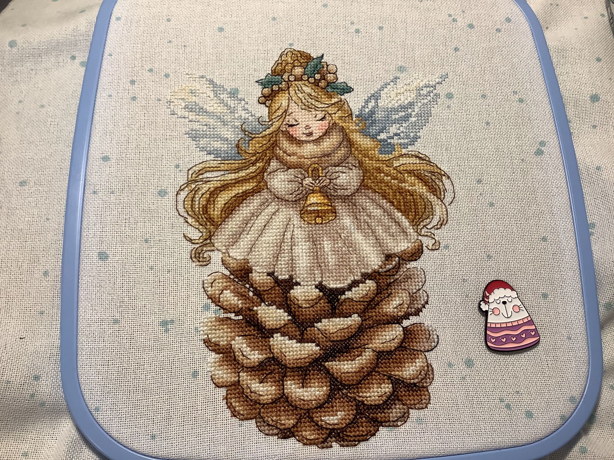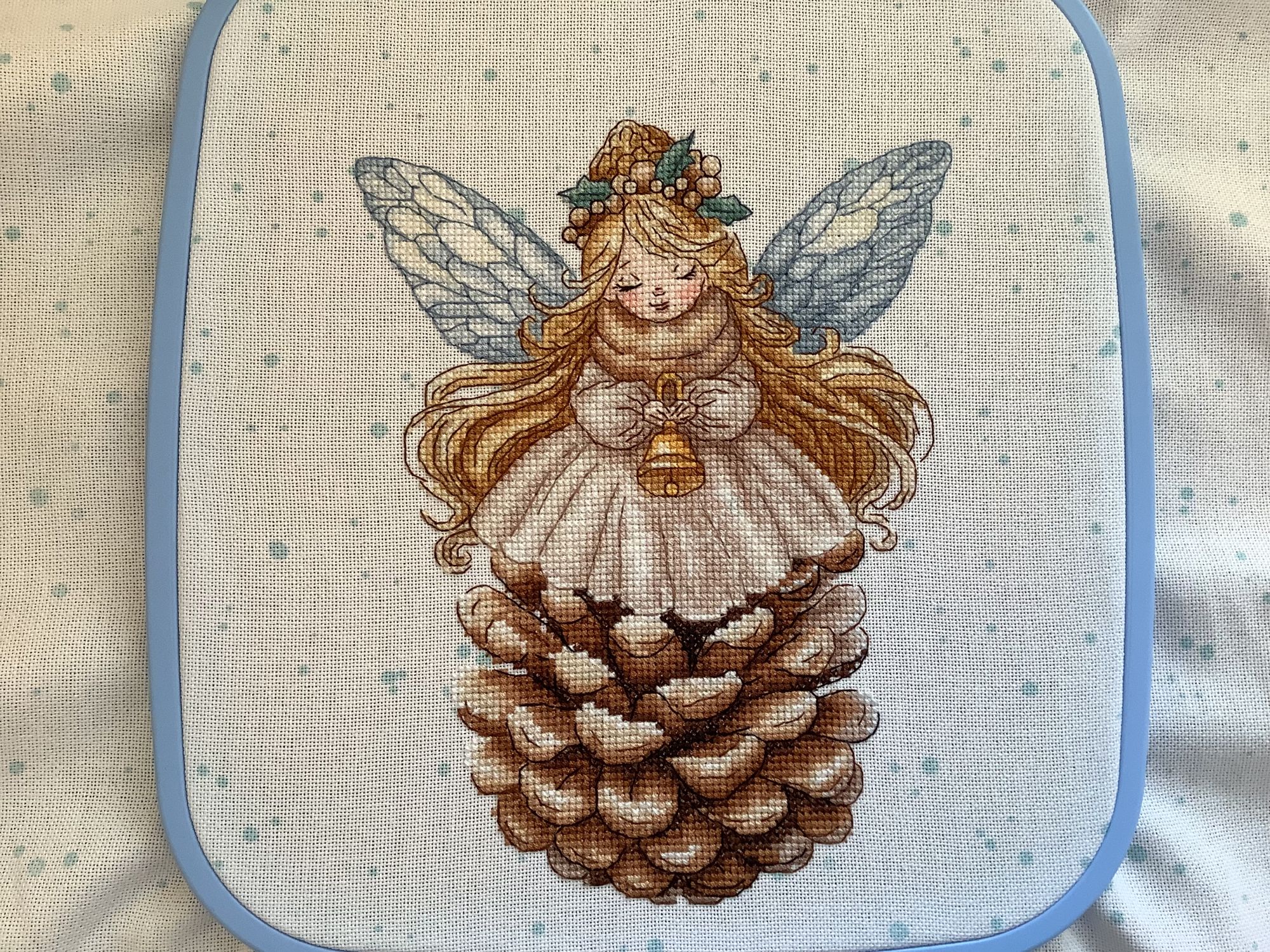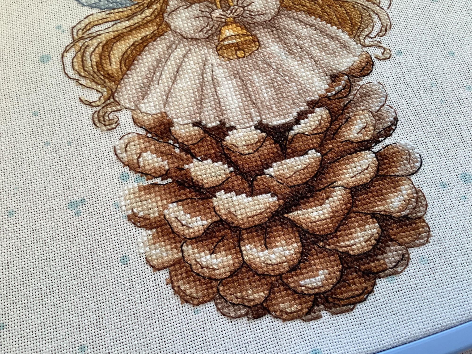 8 марта Всем привет 8 раз в честь 8 марта А я закончила свой 2 новогодний старт. pine cone angel закончен в конце концов решила не вышивать крылышки у сосновой шишки, и разные снежинки, я Художник я так вижу))). Процесс был для меня Мега приятный несмотря на все эти коричневые цвета, бек оживил работу, его я делала с не меньшим вдохновением, чем крестики. Крылышки получились очень нежными, и да, на голубом цвете основы могли бы так не выделяться, в итоге белый с брызгами - то что нужно. Iulia_Zhi, ЛюдмилаС, Kattrielle и 24 других сказали спасибо Поделиться сообщением Ссылка на сообщение