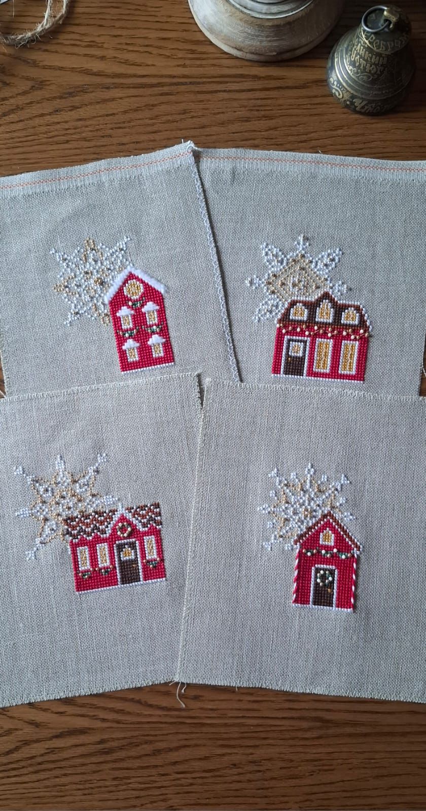 26 января Выполнен пункт плана 6 "Домики по схеме Punochka 3 шт". Оформить планирую в подушечки-подвесы, как на превью к схеме. Один домик был уже готов, добавилось еще три: Цветовая палитра совсем не та, что предлагается дизайнером. Цвета подбирала с тем, чтоб игрушки подходили к уже имеющемуся комплекту елочных украшений. Есть отклонения от схемы в элементах отделки - вышивала, как душе было угодно) Betta, Сибирская Кошка, tamara.34 и 14 других сказали спасибо Поделиться сообщением Ссылка на сообщение