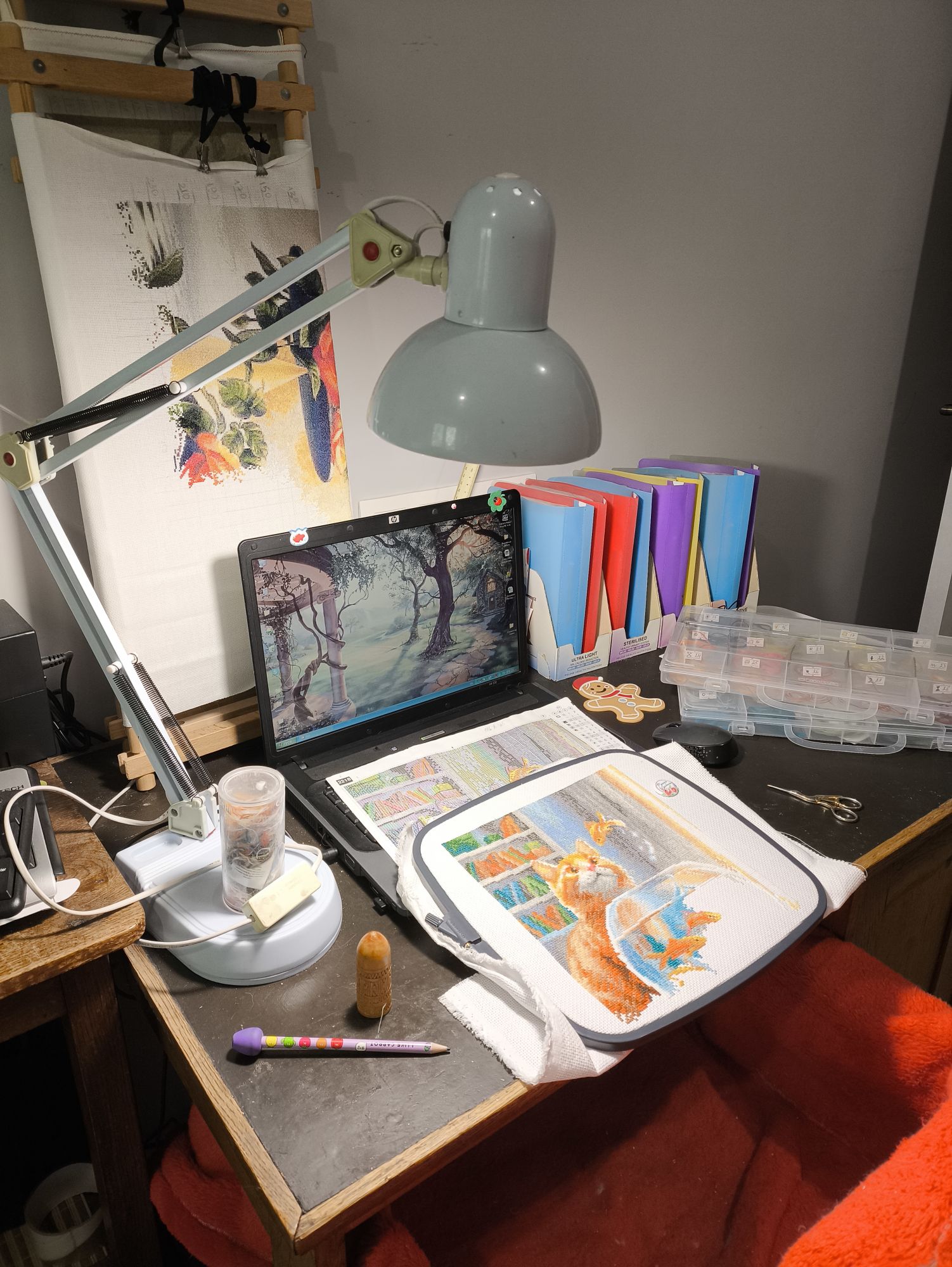 31 мая Тема мая - драматургия, экранизация пьес. Задания 1. Вышивальное место. Есть у меня такое: я вышиваю за древним столом, за которым учился ещё мой дед, потом моя мама, а затем и я. Уже много лет это мое вышивальное место, кресло почти такое же старое, как и стол, и такое же уютное и любимое. Зачем мне этот раритет? Люблю и дорожу))) Сколько прекрасных часов я провела за этим столом за вышивкой, фильмами, аудиокнигами и музыкой! Стойко обороняю свою "святая святых" от домочадцев и только кошки туда нагло проникают допускаются. Кресло с подлокотниками, на которые идеально опираются рамы, поэтому вышиваю я без станка. 2. Сейчас самый основной процесс - Красавчик от Риолис. Параллельно уделяю внимание розам от Артели Белый кроликъ (рама с ними видна на фото), дошиваю Мы здесь от М.П.Студии. 3. Когда едем к свекрови и дорога занимает 2,5 часа, беру какую-нибудь мелочь типа новогодних игрушек с двусторонней вышивкой, или вышивку на пластике или фетре. В больнице с дочкой лежали - вышивала Красавчика, половина персонала ходили к нам в палату кота смотреть)) Раньше, когда дочь была младше и нуждалась в присмотре на дворовой площадке, то брала вышивку с собой на скамейку и тоже успешно вышивала. Вышивальное задание: Праздник каждый день - 10 мая День 9 жизней (конечно же, у кого 9 жизней как не у кошек) Красавчик подрос на 1733 крестика Было стало lamina-65, Ксен40, Auria и 9 других сказали спасибо Поделиться сообщением Ссылка на сообщение