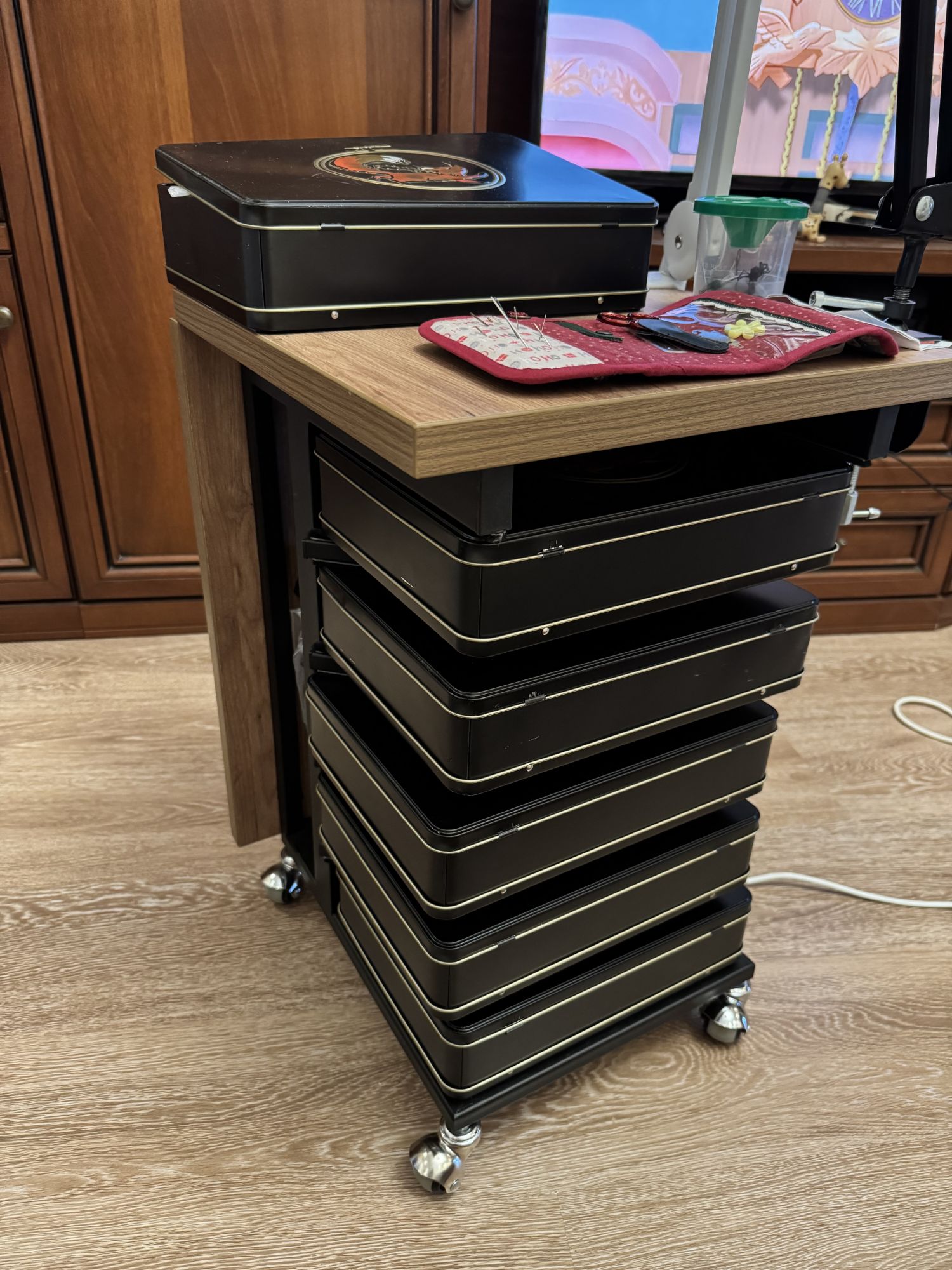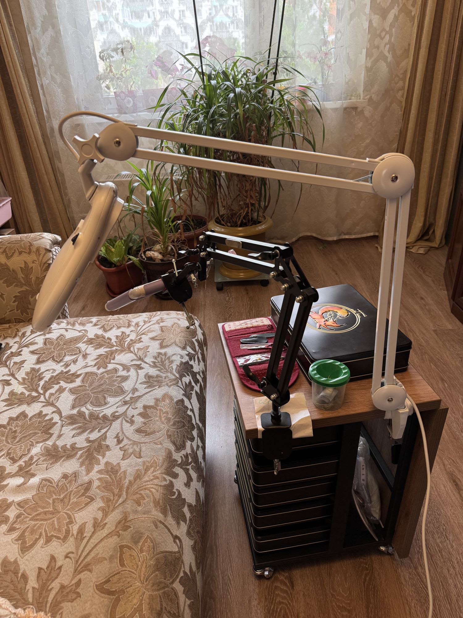 1 июня Поздравляю всех с началом лета! Хочу поделиться своим скромным достижением: выполнен п. 22 плана - небольшой дизайн по простой схеме с минимумом цветов - начать и вышить не менее половины. Вышита половина, даже чуть-чуть больше И поскольку сейчас больше тянет вышивать по авторским схемам, а не по наборам, прошу сделать две замены в плане: 18. Elsa Williams «Two by Two» или другой дизайн с Ноевым ковчегом - начать и вышить не менее 500 крестиков - хочу заменить на «Русалка» по схеме Ксении Новиковой, вышить полностью. 19. Oehlenschlager 73-76646 «Свинки» - начать и вышить 500 крестиков - хочу заменить на «Летний комодик» по схеме Полины Тарусовой, вышить полностью. А еще хочу показать свое рабочее место (вне конкурса). Наверное, не я одна мигрирую с вышивкой по всей квартире, и, может быть, кому-то пригодится мой опыт. Долго мучилась, таская за собой вышивальные принадлежности и пристраиваясь с ними то тут, то там. В процессе что-то теряла, находила, опять теряла. Потом началась другая жизнь - муж подарил вот такую тележку от «Я вышиваю». Использую в комплекте со станком «Марта» и яркой лампой, и очень довольна. Могу перевезти мое вышивальное место в любую комнату, все нужное всегда под рукой в коробочках. Есть место, куда поставить пару текущих процессов на рамах/пяльцах. Если что-то долго не вышиваю, то убираю в шкаф. А так - надоело вышивать один процесс, убрала его, другой достала, не вставая с дивана, и продолжила наслаждаться вышиванием. В идеале, конечно, хотелось бы свою рукодельную комнату с красивыми шкафчиками, удобным диванчиком и с вышивками по стенам. Но габариты квартиры, к сожалению, не позволяют. Auria, Сибирская Кошка, Надежда Минск и 10 других сказали спасибо Поделиться сообщением Ссылка на сообщение