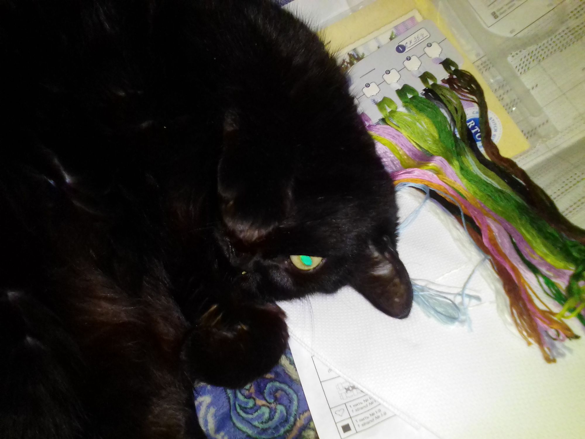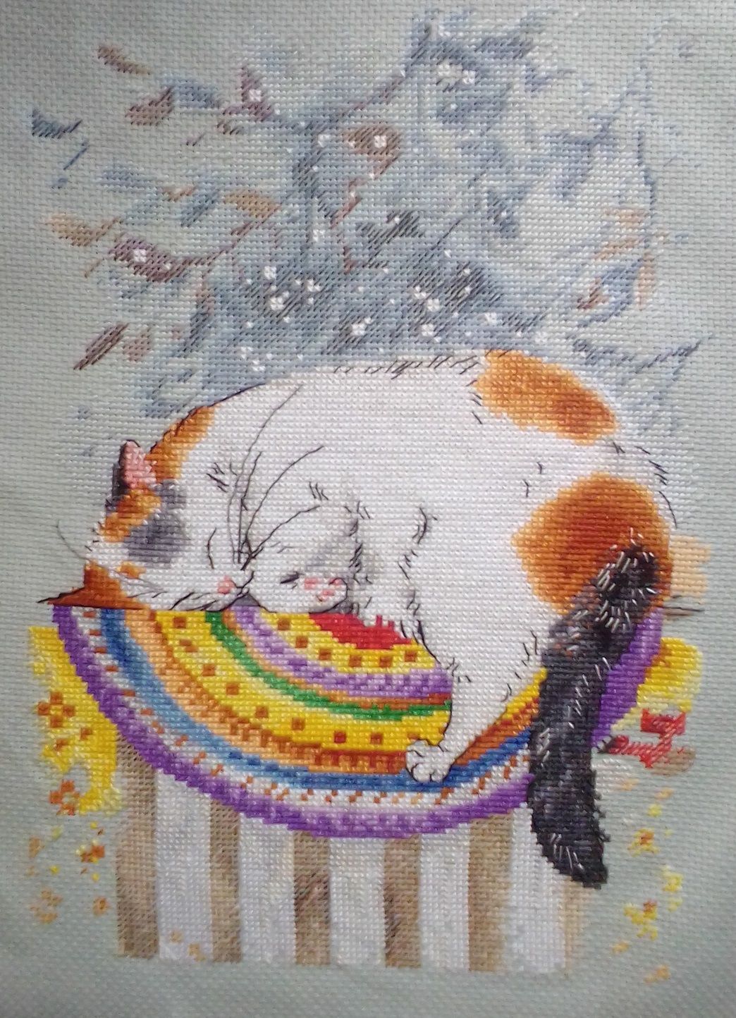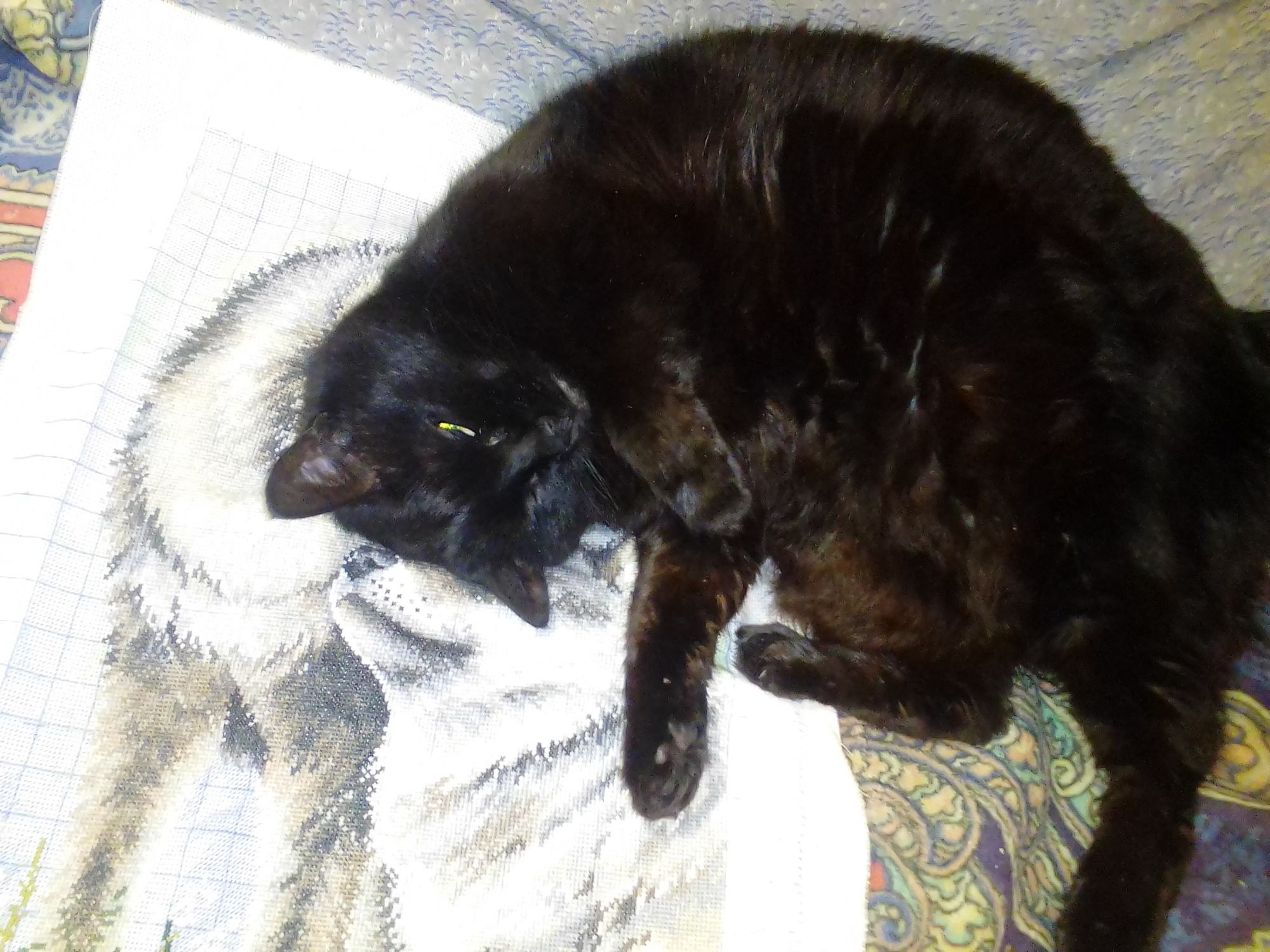 8 сентября 3. Расскажите про смешные или трогательные моменты, связанные с вышивкой. Вроде ничего такого особенного у меня нет Может, если то, что я только что написала Кошку я начала, как написано, с середины, на несколько дней отложила, а потом не нашла, где верх, где низ, канва квадратная, разметки нет, рыже-коричневая мешанина в шерсти, короче, так и лежит, но из Новосибирска сюда я ее привезла, не выбросила. Или еще вот, главная фотомодель наша, даже если спит в другом углу, ей не лень радостно прискочить, только я соберусь вышитое сфотографировать и это далекоо не всё, она и в процессах у меня неожиданно фигурирует, похоже, что и Татусе она нравится. tamara.34, Betta, Auria и 7 других сказали спасибо Поделиться сообщением Ссылка на сообщение
