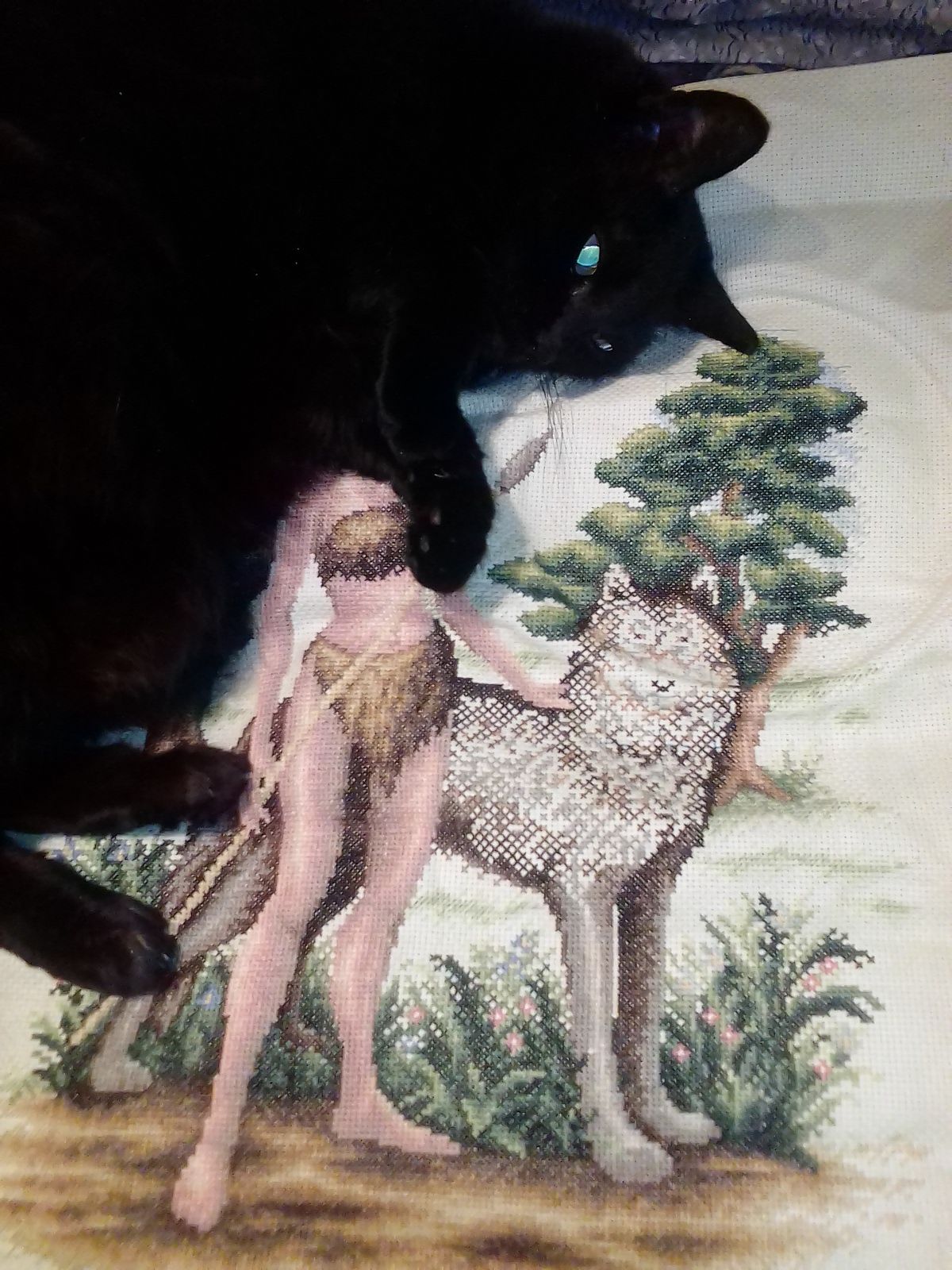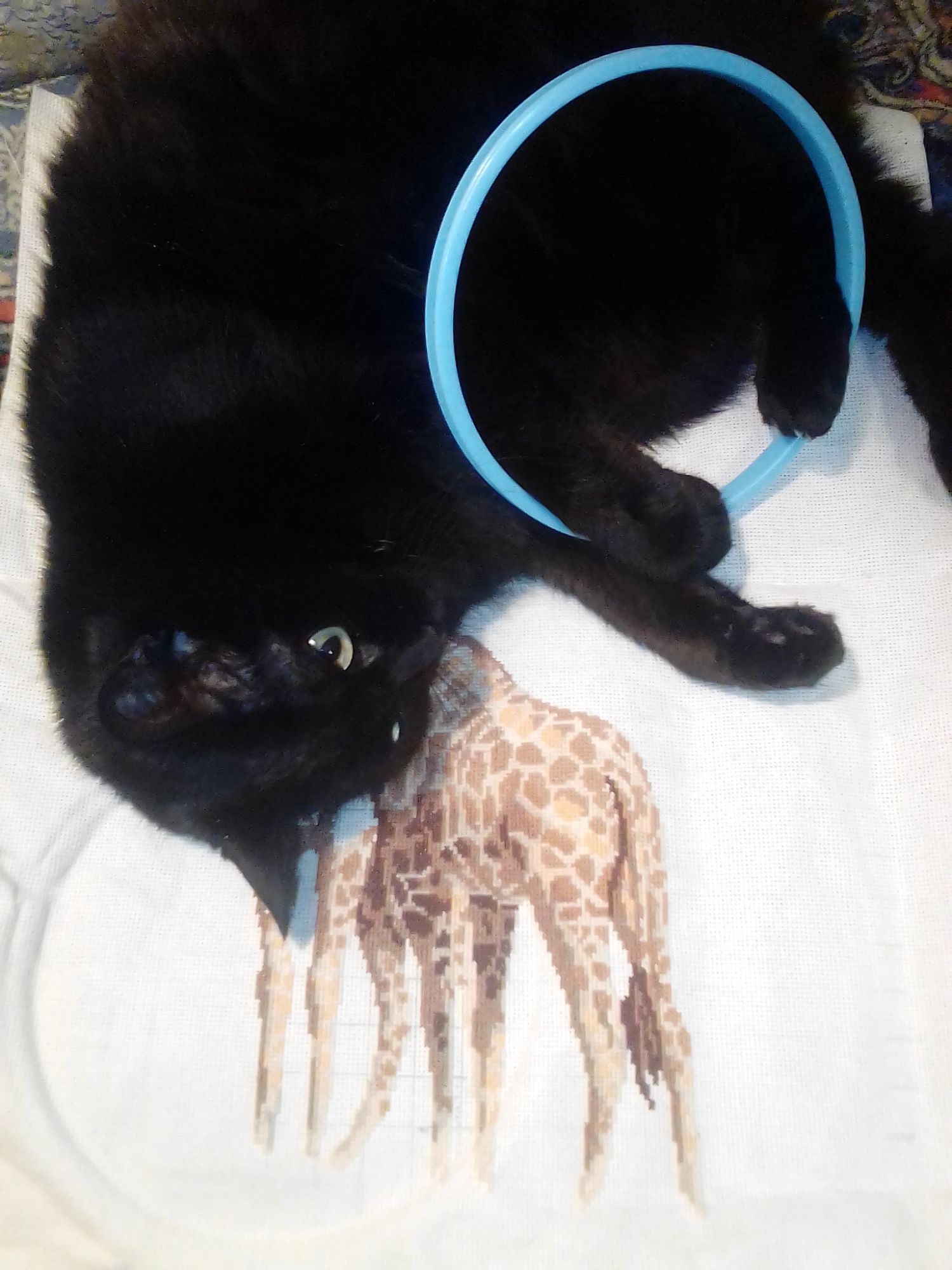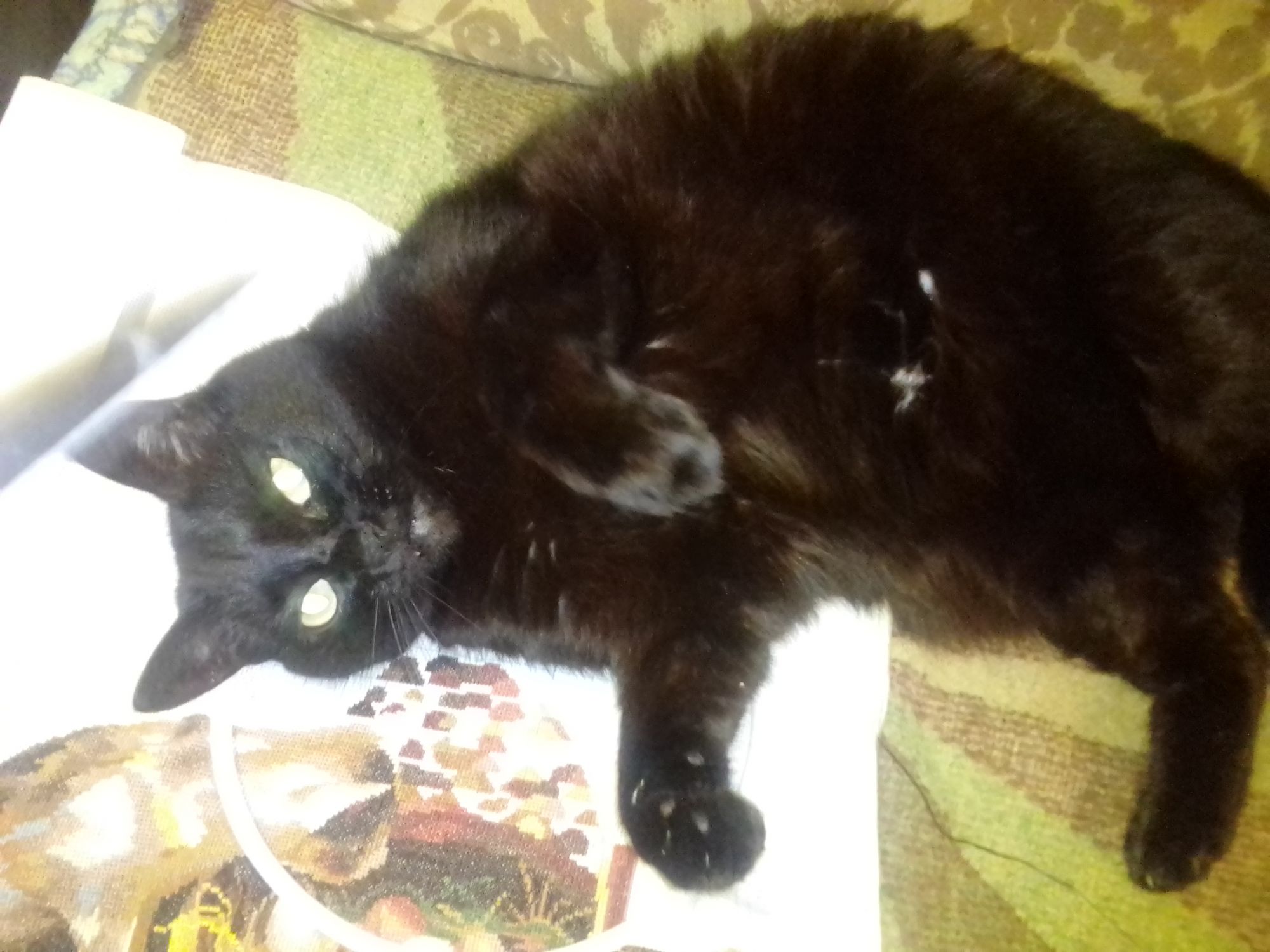 8 сентября 3. Расскажите про смешные или трогательные моменты, связанные с вышивкой. Вроде ничего такого особенного у меня нет Может, если то, что я только что написала Кошку я начала, как написано, с середины, на несколько дней отложила, а потом не нашла, где верх, где низ, канва квадратная, разметки нет, рыже-коричневая мешанина в шерсти, короче, так и лежит, но из Новосибирска сюда я ее привезла, не выбросила. Или еще вот, главная фотомодель наша, даже если спит в другом углу, ей не лень радостно прискочить, только я соберусь вышитое сфотографировать и это далекоо не всё, она и в процессах у меня неожиданно фигурирует, похоже, что и Татусе она нравится. tamara.34, Betta, Auria и 7 других сказали спасибо Поделиться сообщением Ссылка на сообщение