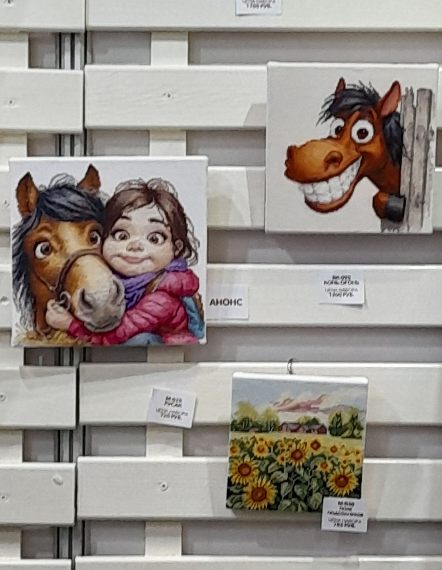 26 сентября 4 часа назад, феня777 сказал(а): А девочки-хулиганки были? Вот не помню...,да,все-таки одна была точно! Были ещё мишки -циркачи довольно симпатичные,гуси в мушкетерских плащах и пара натюрмортов в серо-белых тонах,вроде полукрест,новинки,но довольно размытые и бледные с розами и лимонами,они висят сбоку с наружней стороны.Может попадут к кому-нибудь на фотографии... Lorans и феня777 сказали спасибо Поделиться сообщением Ссылка на сообщение