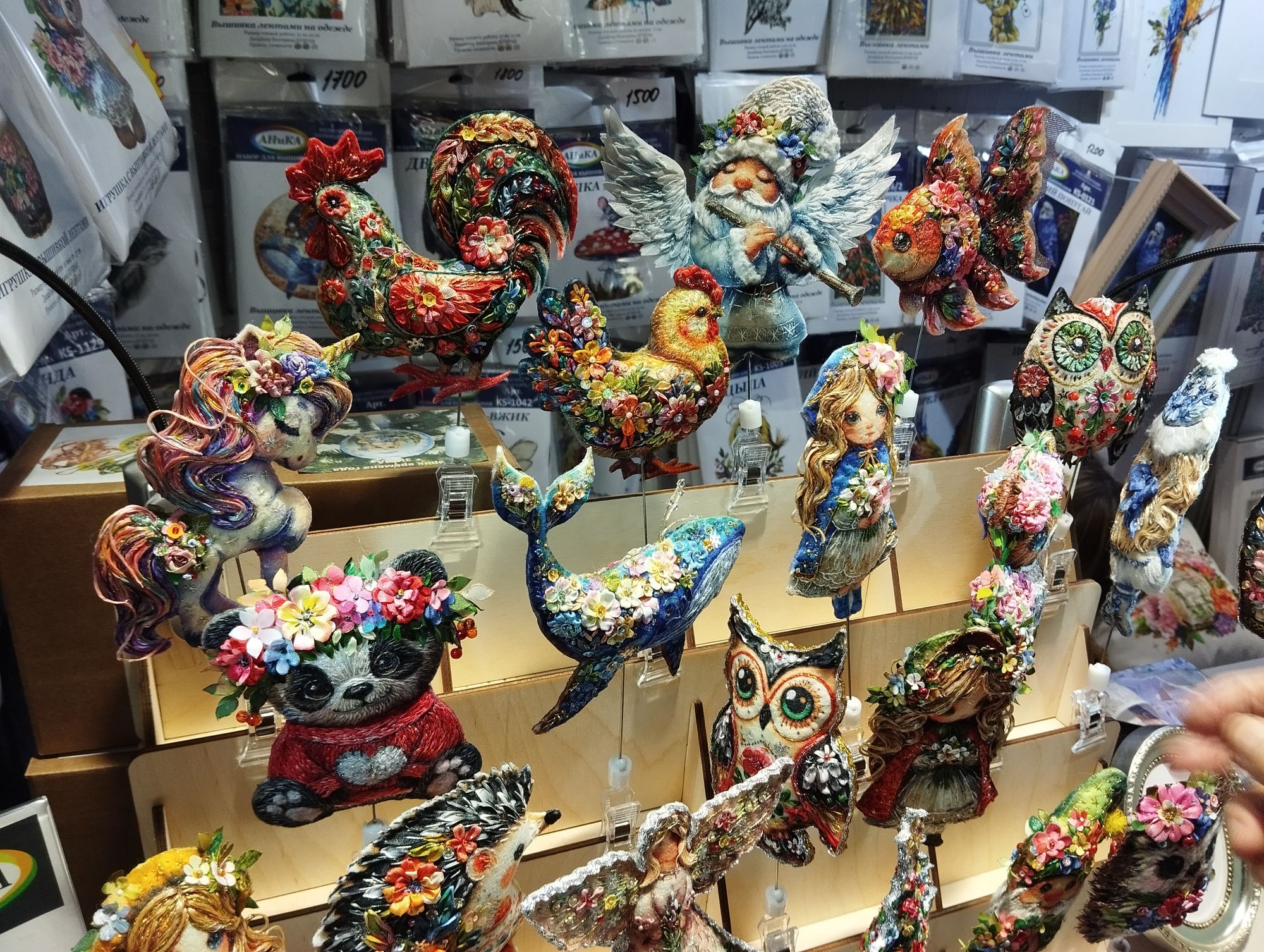 26 сентября Добрый лень! добрый день! Неиного фото вреремежку. Очень понравились наборы с лентами! Прям сразу и не догодаешься, что это ленты, с расстояния метра кажется что гладь. У Лавочки фондучка все монументально, прошлась мимо них с вытаращенными глазами и испугом. Вот сделала одно фото, понравилось, что при оформлении они мышке лапки сделали. На выставке было много дизайнеров. Раньше мне кажется они в одном ряду все были, сейчас и во втором ряду много. Мужу очень понравилась картина от Золотого руна с лимонами. Пристал:"Купи и вышей! ", отбилась. У Совиного леса бенефис, не пробъешься, народ активно покупает. Мне очень понравилась фигурка пушистой белочки на стенде. Вот ее бы я купила. У Панны некрасивые отшивы. Подушка с овцами вышита левой ногой, это неприятно удивило. Знаменитая юбка с Дедом морозом тоже была представлена. Красиво! Поразила очередь к дизайнеру Григорьевой, метров 10. С трудом пробилась, посмотрела. Меня там кроме ее котов больше ничего не зацепило, но стоять в такой очереди не хватило решимости. Много пластика, много деревяшек от дизайнеров. Из производителей: Панна, Риолис, Овен, Палитра, Русская искуссница, Сделано с любовью, Образа в каменьях, Рто, Золотое руно, Совиный лес. Есть что посмотреть. Вот пожалуй и все свежие впечатления. Vitaliya, Avanna, Robinka и 48 других сказали спасибо Поделиться сообщением Ссылка на сообщение