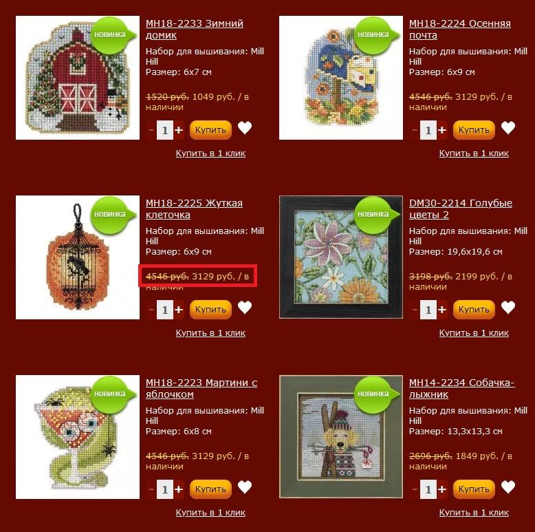 2 декабря 2022 9 часов назад, Mirkrestikom сказал(а): Да, оЧепятка)) Цены исправили, извиняемся))))) А по скидкам - но ведь так гораздо дешевле, чем обычная цена и даже -7% скидка Мы были готовы к такому) Поэтому если вам хочется использовать свою накопительную скидку, то мы оформим заказ по обычной цене - ваша скидка. Но это будет дороже(((( А у вас реально новинки от Милл Хилла размером 6*8 см стоят 4,5 тысячи без скидки??? Я прям в голове это уложить не могу. Сейчас вот прям на сайте смотрела, цены именно такие. Со скидкой 3 129 рублей, но это тоже где-то за гранью. Lucia-del-Umago, reyjeff, Novia и 3 других сказали спасибо Поделиться сообщением Ссылка на сообщение