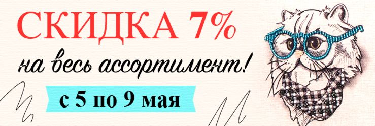 5 мая 2017 Скидки ещё больше! Только с 5 по 9 мая скидка 7% на ВСЁ!Приобрести товары для рукоделия со скидкой можно по ссылке: http://www.mirkrestikom.ru/offers/ ната16, Lara2808 и irinasmychk сказали спасибо Поделиться сообщением Ссылка на сообщение