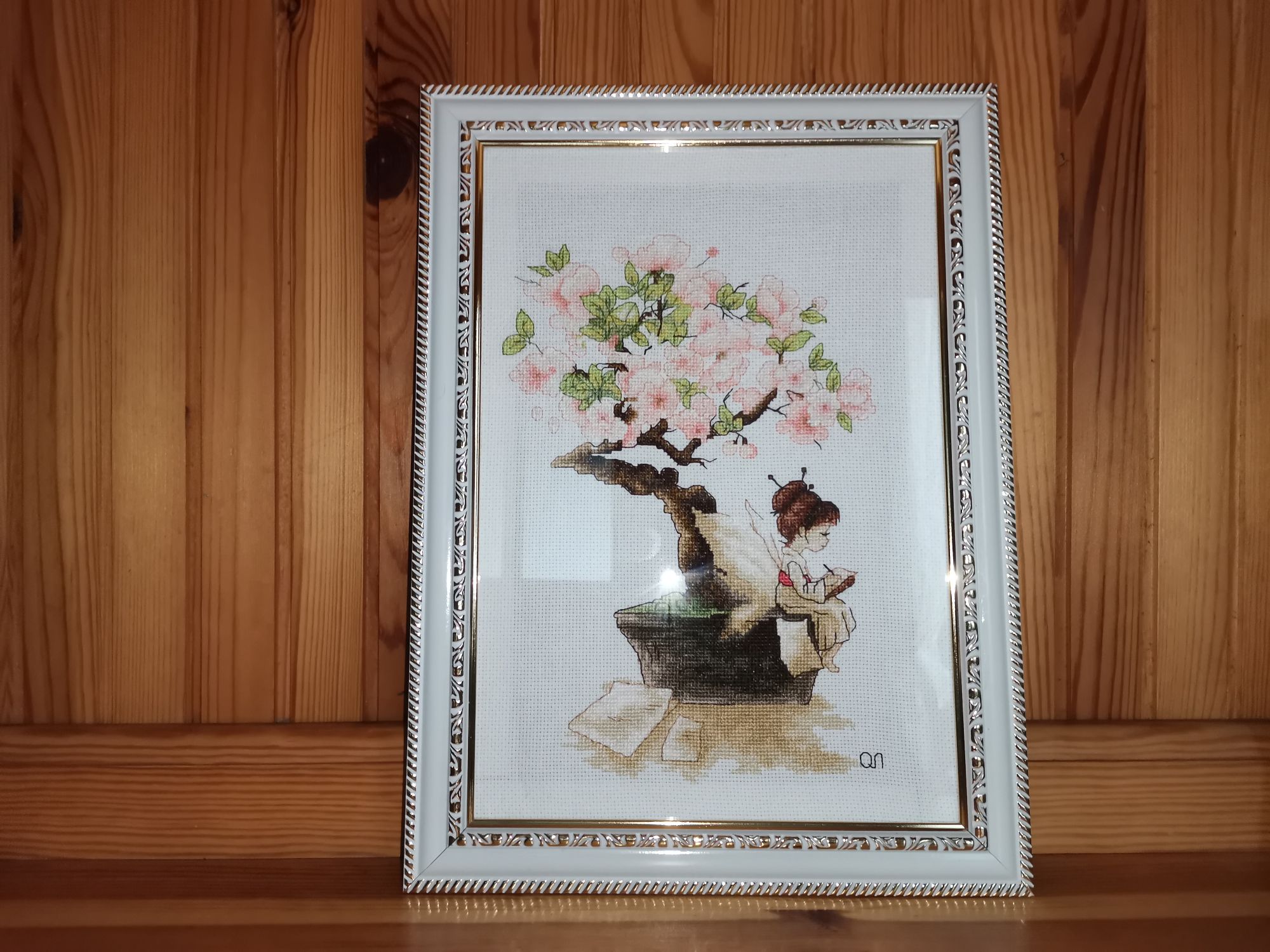 6 июня 2021 Вот так оформила "Сакуру". Ничего необычного: светлая рамка, без паспарту. Но хотелось сохранить лёгкость и безмятежность запечатленного мгновения. К окончанию работы впервые зацвел кустик похожий на сакуру. На вышивке дерево бонсай. Подумала, что и мой неплодоносящий грецкий орех тоже похож на бонсай. Как всё в этом мире взаимосвязано... Betta, lady.nelli2015@gmail.com, IrnKA и 20 других сказали спасибо Поделиться сообщением Ссылка на сообщение