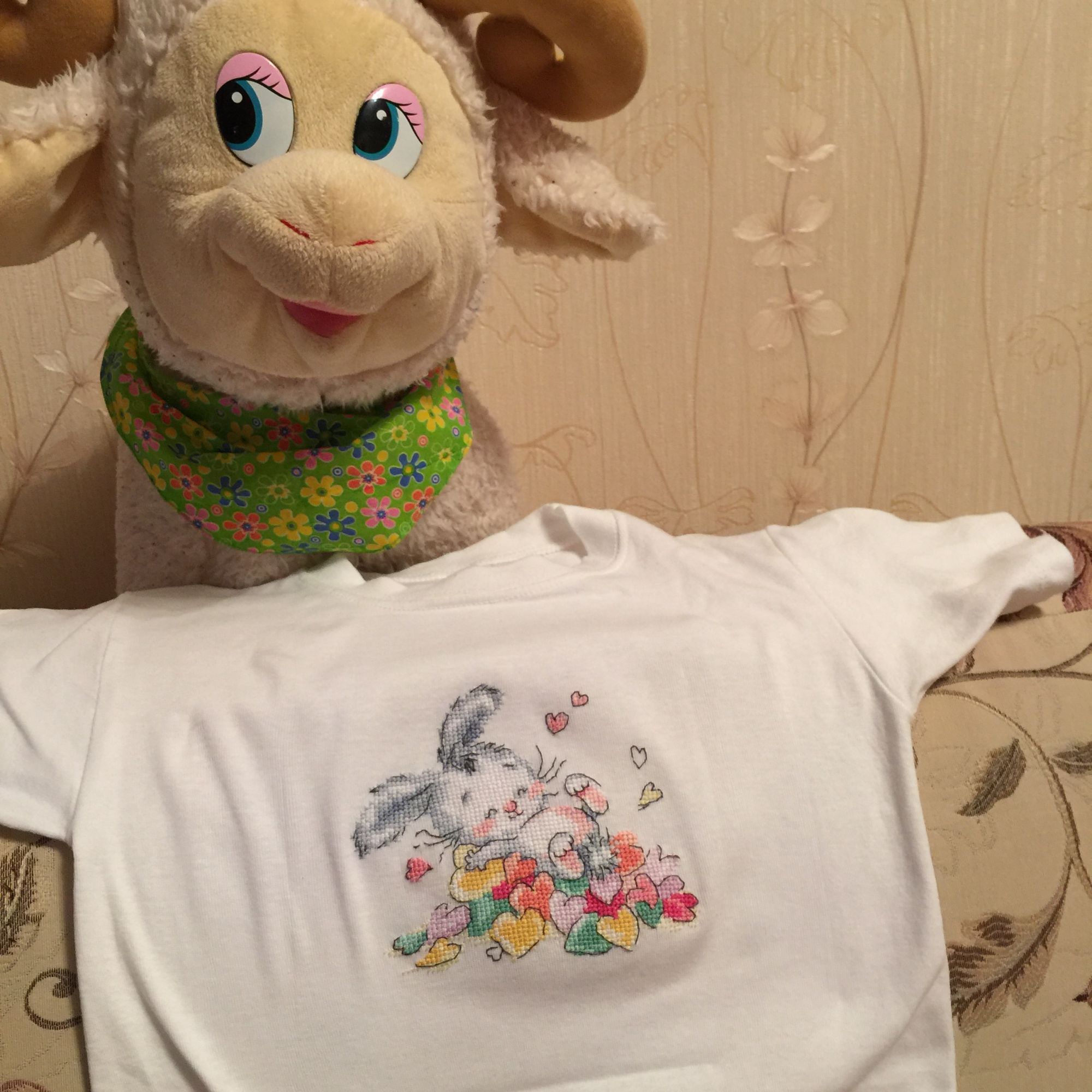30 июня 2016 А теперь готовый Зайка вашему вниманию детальки поближе И футболками целом Она немного растянута, т.к. я все-таки натягивала её слегка на рамку, но все это уйдёт после стирки, я думаю. МарСанна, Nadinka-Blondinka, ОльгаВл и 4 других сказали спасибо Поделиться сообщением Ссылка на сообщение