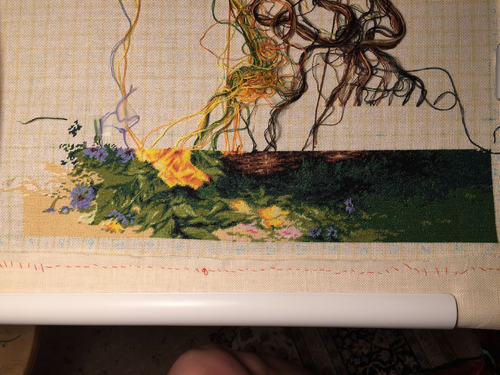 28 июня 2016 Привет! Пока еду метро, есть время похвалится. Добилась крестиковая-полукрестиковая часть Зайки. Остался бэк. Ну, думаю, сейчас я его!... Не тут-то было: на водорастворимый канве делать мелкий бэк не по клеточкам задачка не из лёгких... В общем, проковырявшись, пораспускавши... Решила постирать и сделать бэк как получится... А пока футболочка сохла я решила поковырять гобелен. Вот чего есть на данный момент и последний вышиваемый фрагмент поближе На этом пока все. Всем хорошей недели! Хельга, Путешественница, Nadinka-Blondinka и 3 других сказали спасибо Поделиться сообщением Ссылка на сообщение