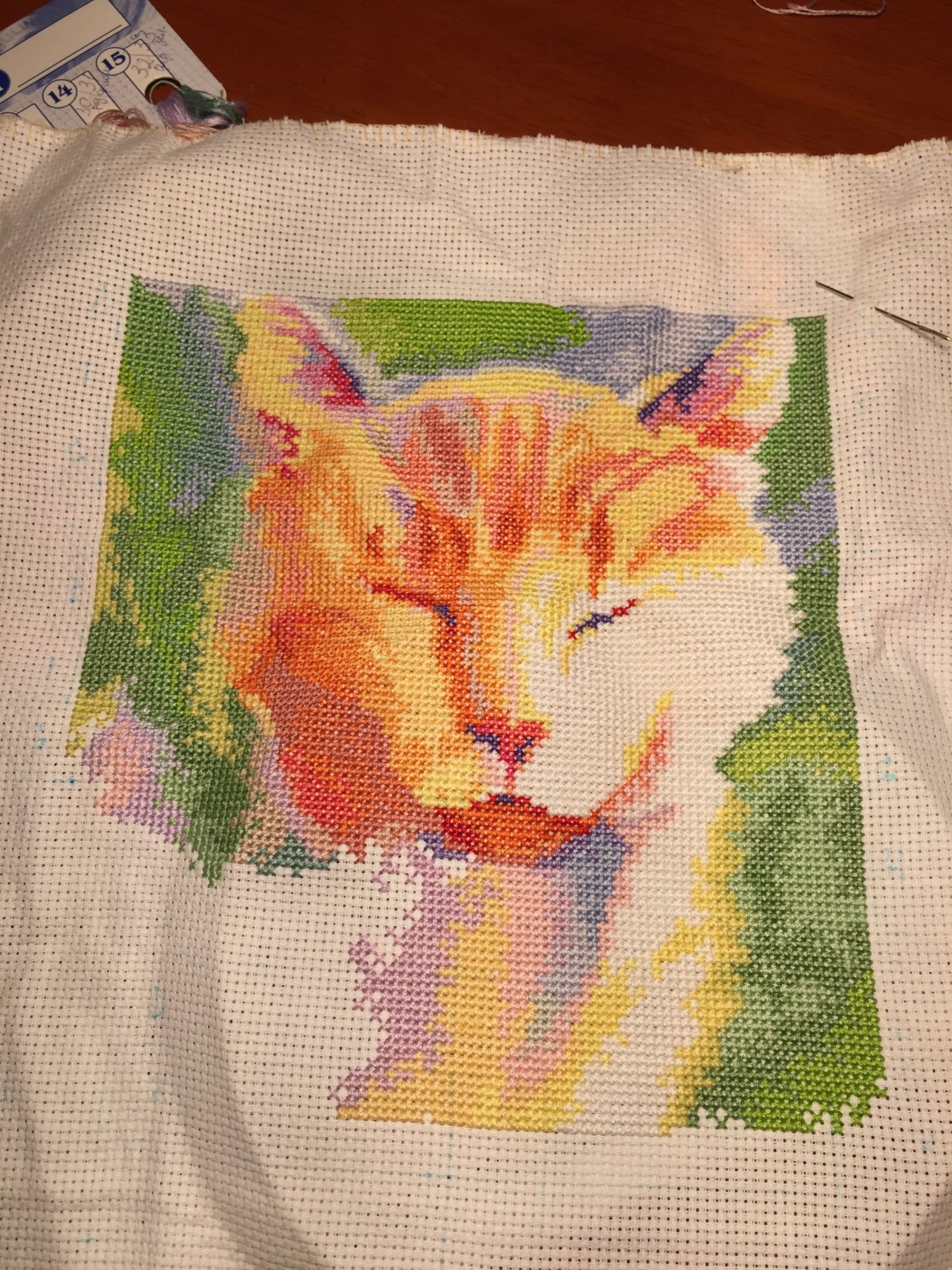 13 октября 2016 Олечка, ну наконец-то А я уже собиралась "ау" кричать ))) Ну, во-первых, с завершением твоего солнечного котика! Он такой красивый получился, как здорово подобраны эти цветовые пятна, сами цвета такие радостные, самое то для хмурых осенних денёчков. Усики и бровки мне очень понравились! А крестики какие ровненькие и аккуратные! На одном из фото они вообще похожи на стразики в алмазной мозаике. Катьке моей быстро наскучило ее собирать, садиться за нее очень редко и делает по чуть-чуть, ну и я свою лепту иногда вношу ))) Честно сказать, крестики интересней )) Подушечка продвинулась немного - это тоже хорошо. Наверное, тяжеловато идет из-за таких спокойных цветов! Тебе ее надо чередовать с чем-то более ярким! Например, гобеленчик у тебя есть очень даже подходящий... И птичку я дождалась! Молодец, что ты всё-таки ее не забрасываешь! Надо только сесть и процесс пойдет гораздо быстрее, так и глазом не успеешь моргнуть, как закончишь. Это я по себе знаю. А у меня в Овне закончились еще два цвета Опять пришлось подыскивать что-то похожее в своих остатках. Olka сказал(а) спасибо Поделиться сообщением Ссылка на сообщение