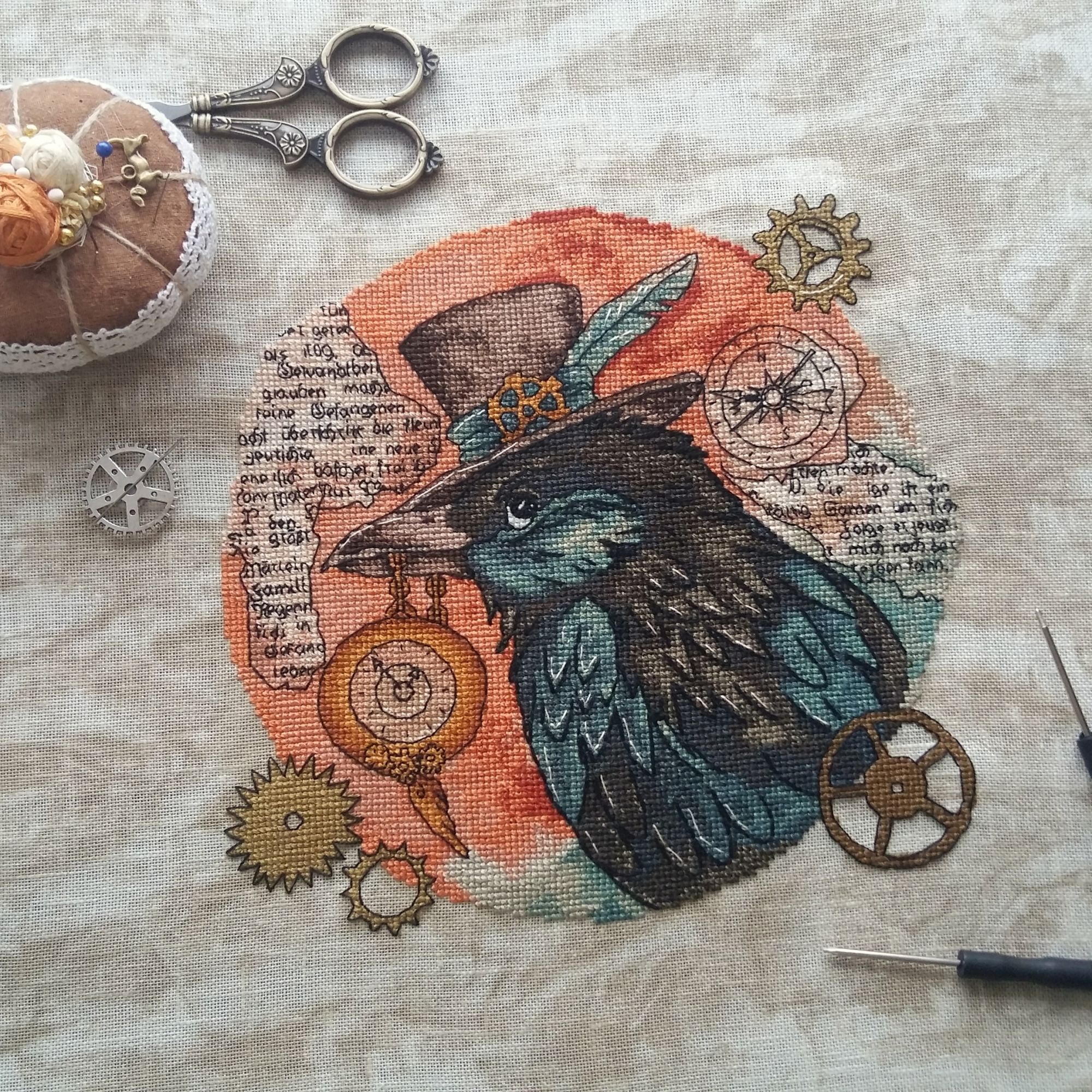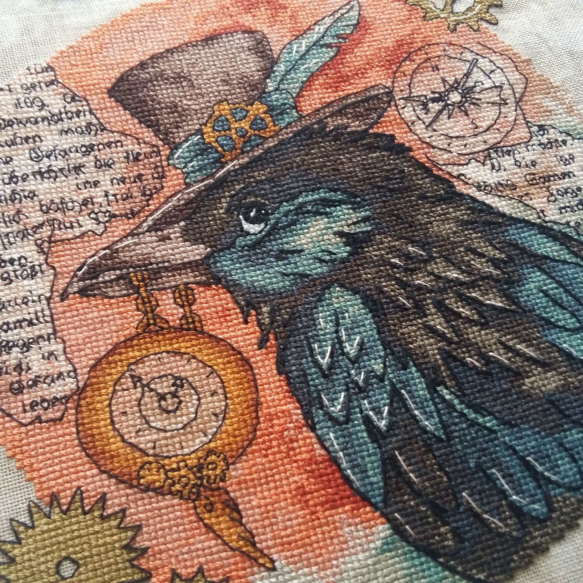 6 февраля 2018 Часовых дел ворон по схеме от Мастерской Эльфов Я от него в полном восторге! Все-все трудности процесса меркнут в тот момент, когда вышивка готова А трудности были. Я даже поэтому одну шестерёнку не вышила Для тех кто решится на этот сюжет-будьте готовы к четвертинкам и дробному бэку. И к большому количеству блендов. И если бленды меня не пугают совсем, то четвертинки прям ух.... Основа-белфаст. Это 32 каунт, лучше брать покрупнее.Но в моём случае мне основа оооочень нравится! Придаёт картинке некую винтажность. kreolka, ОльгаВл, Ветер и 15 других сказали спасибо Поделиться сообщением Ссылка на сообщение