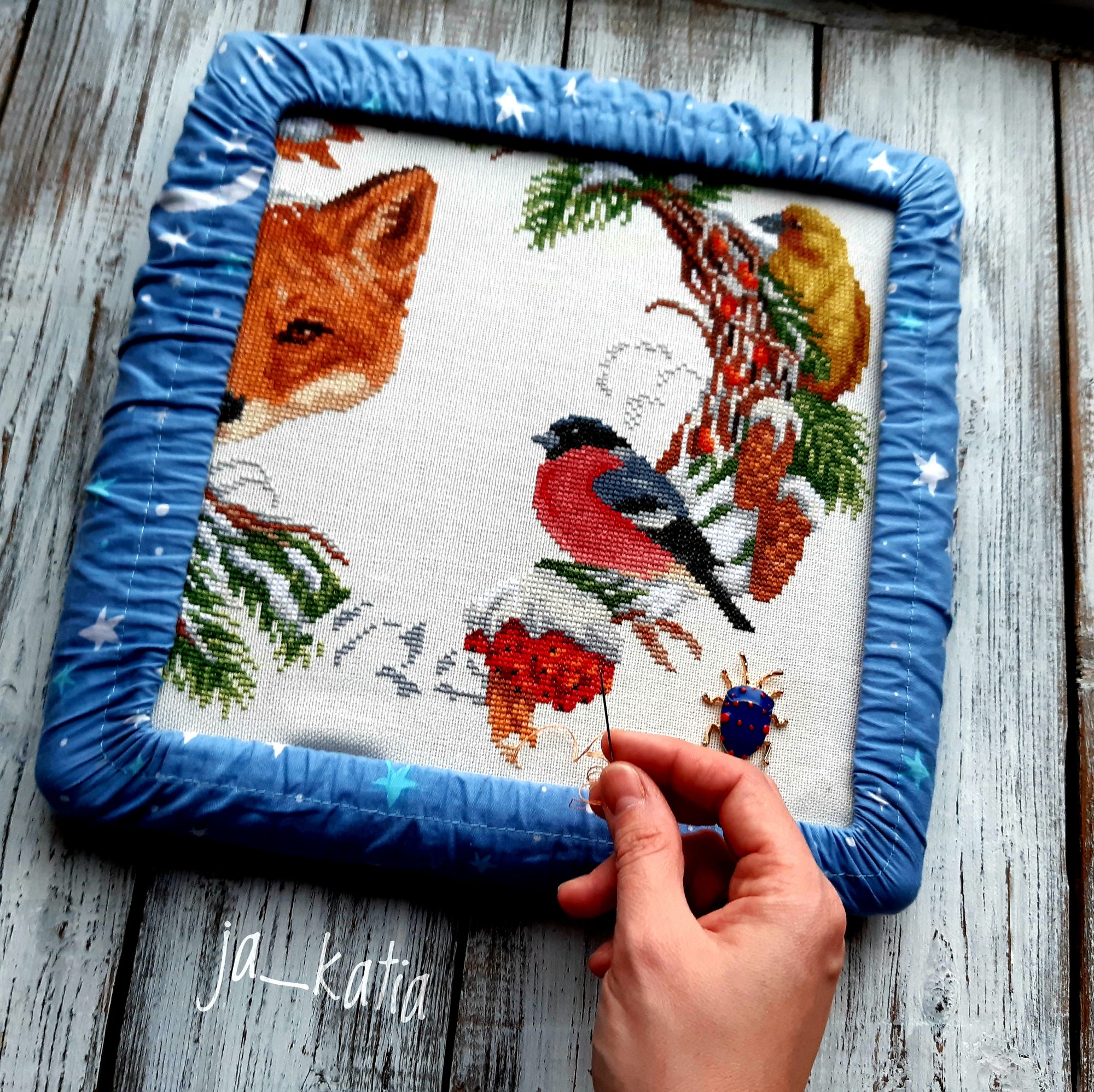 18 декабря 2019 Вот и готов Зимний венок. Вышивала по набору фирмы @panna_official Процесс и результат очень понравились. Заменила французские узелки на белый бисер. Создание ягод можжевельника вызвали некоторые сложности, но и тут я справилась. Все ниточки остались с хорошим запасом. Две схемы-на крестики и на бэк. Чуток четверть крестиков. Счётный бэк. Только крест в два сложения. Не процесс, а сказка. Я полюбила линду от Gamma. Стоило её лишь постирать с кондиционером. Catopuma, Евгения Чичкова, Дикая белочка и 16 других сказали спасибо Поделиться сообщением Ссылка на сообщение