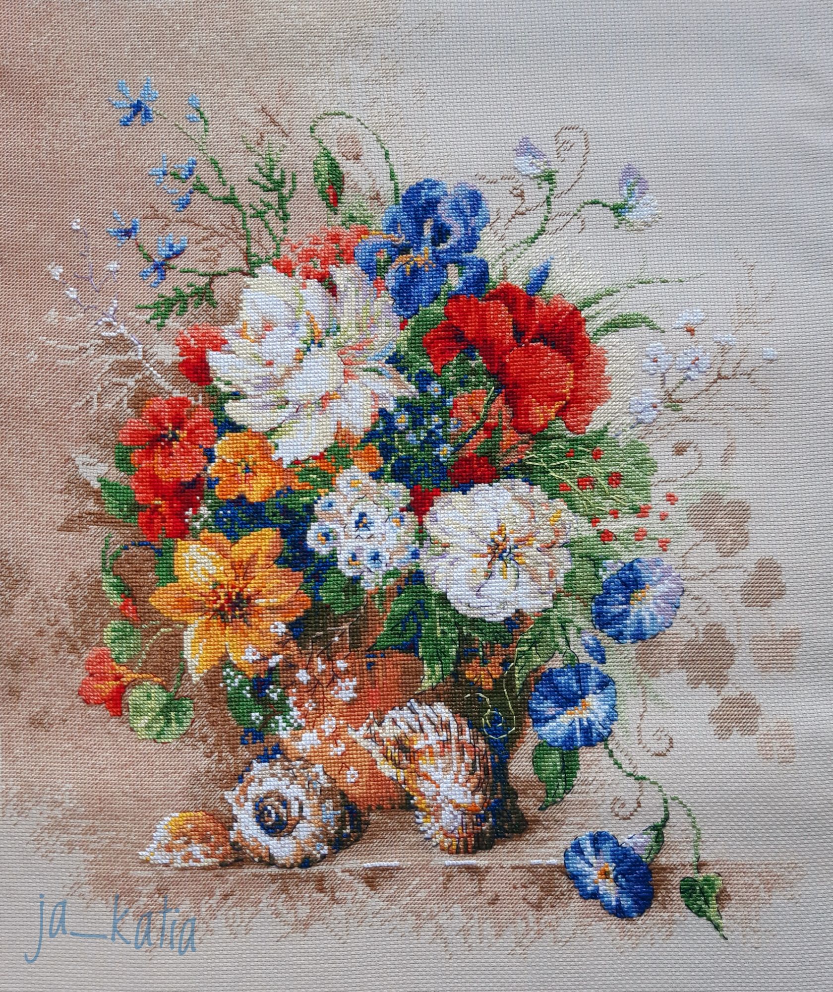 28 сентября 2020 26.09.2020 в 14:19, Lapyshok сказал(а): Крестки -просто заглядение! 26.09.2020 в 10:47, чеба сказал(а): Катя, какой яркий букет! 26.09.2020 в 10:31, Zlatodara сказал(а): Катя, букет потрясающий: сочный, яркий и нежный одновременно! Супер! Большое спасибо! А вот и финиш: На всю работу у меня ушло около трёх месяцев. Вышивается очень просто! чеба, Lapyshok, murgatroit и 10 других сказали спасибо Поделиться сообщением Ссылка на сообщение