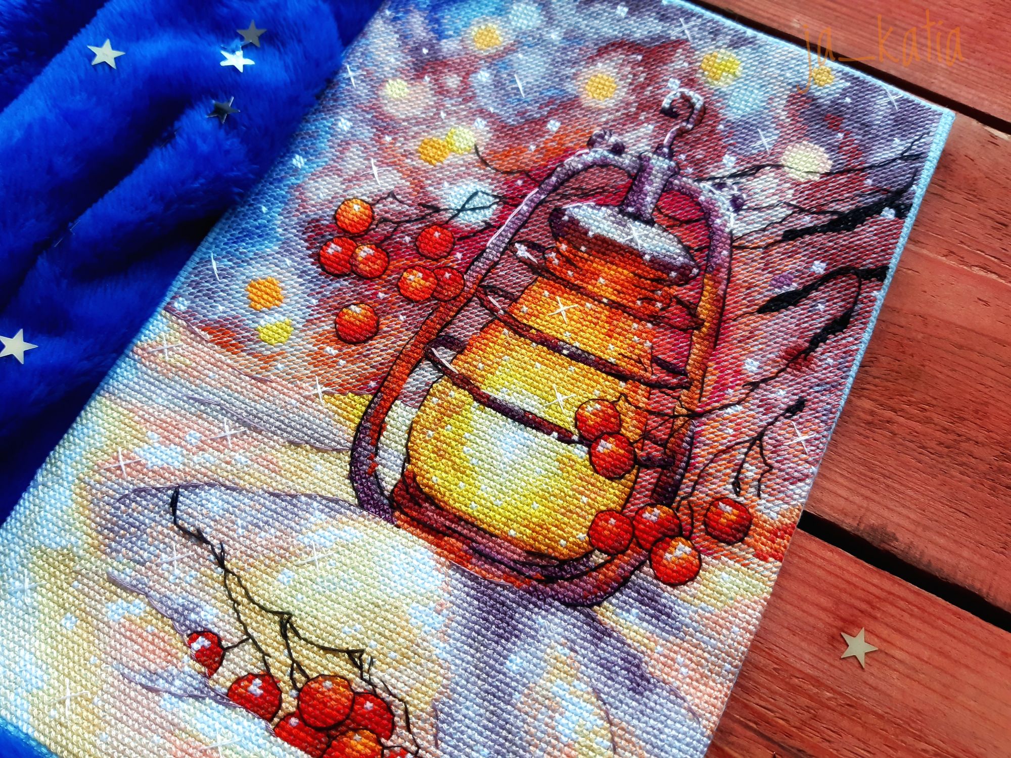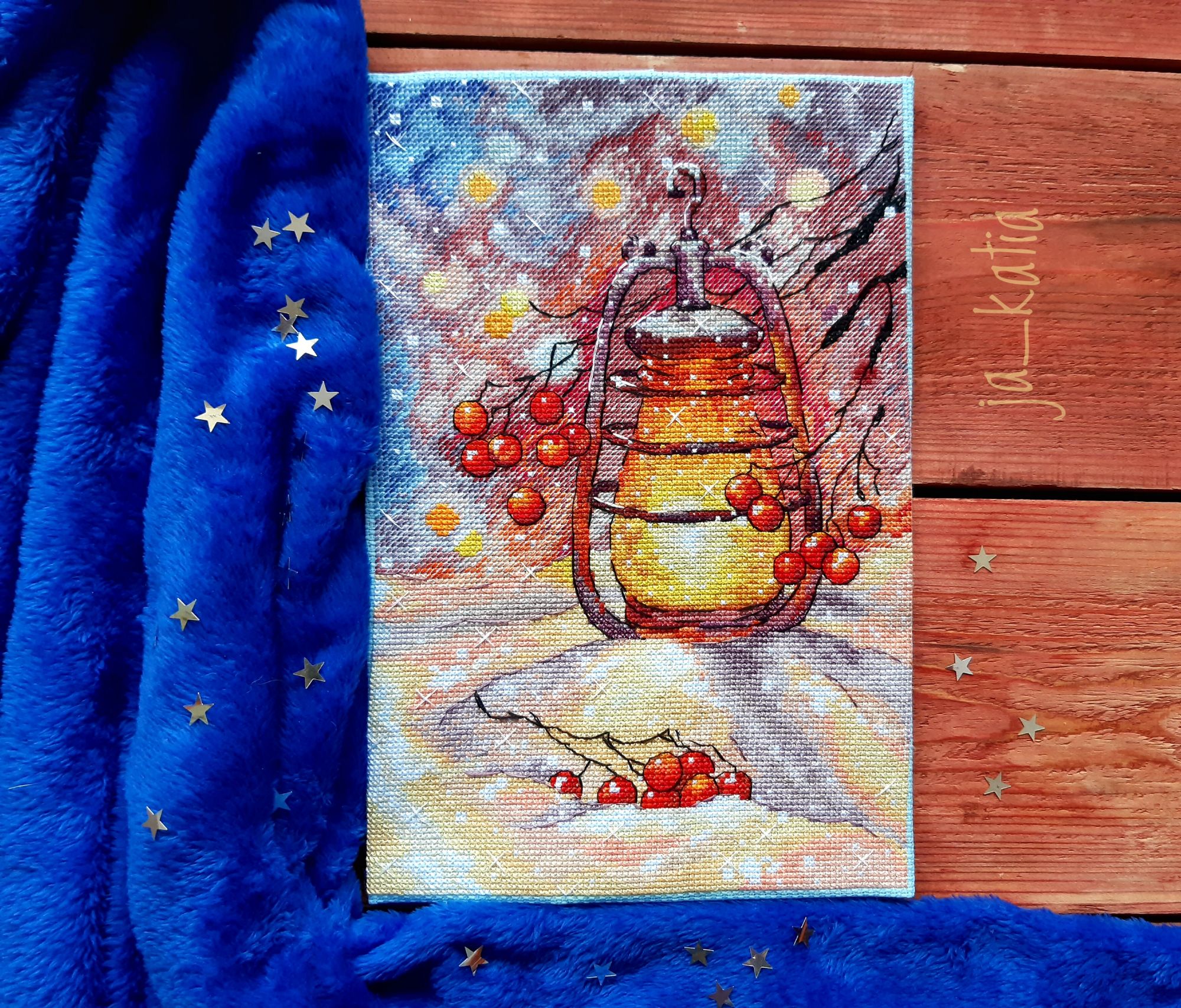 14 февраля 2021 Вот такой чудесный фонарик вышился у меня. Схема Анастасии Еремеевой (гр.в вк Овечкины забавы). Много полукреста в фоне. И очень много оттенков в ключе, плюс огромное количество блендов. Я вышивала по ключу, но мне кажется, что половину блендов можно бы было избежать. В основе Аида 14 каунта, голубая. Возможно, что с оттенком я промахнулась. Стоило взять темную. Евгения Чичкова, S4astlivaja, Татуся и 9 других сказали спасибо Поделиться сообщением Ссылка на сообщение