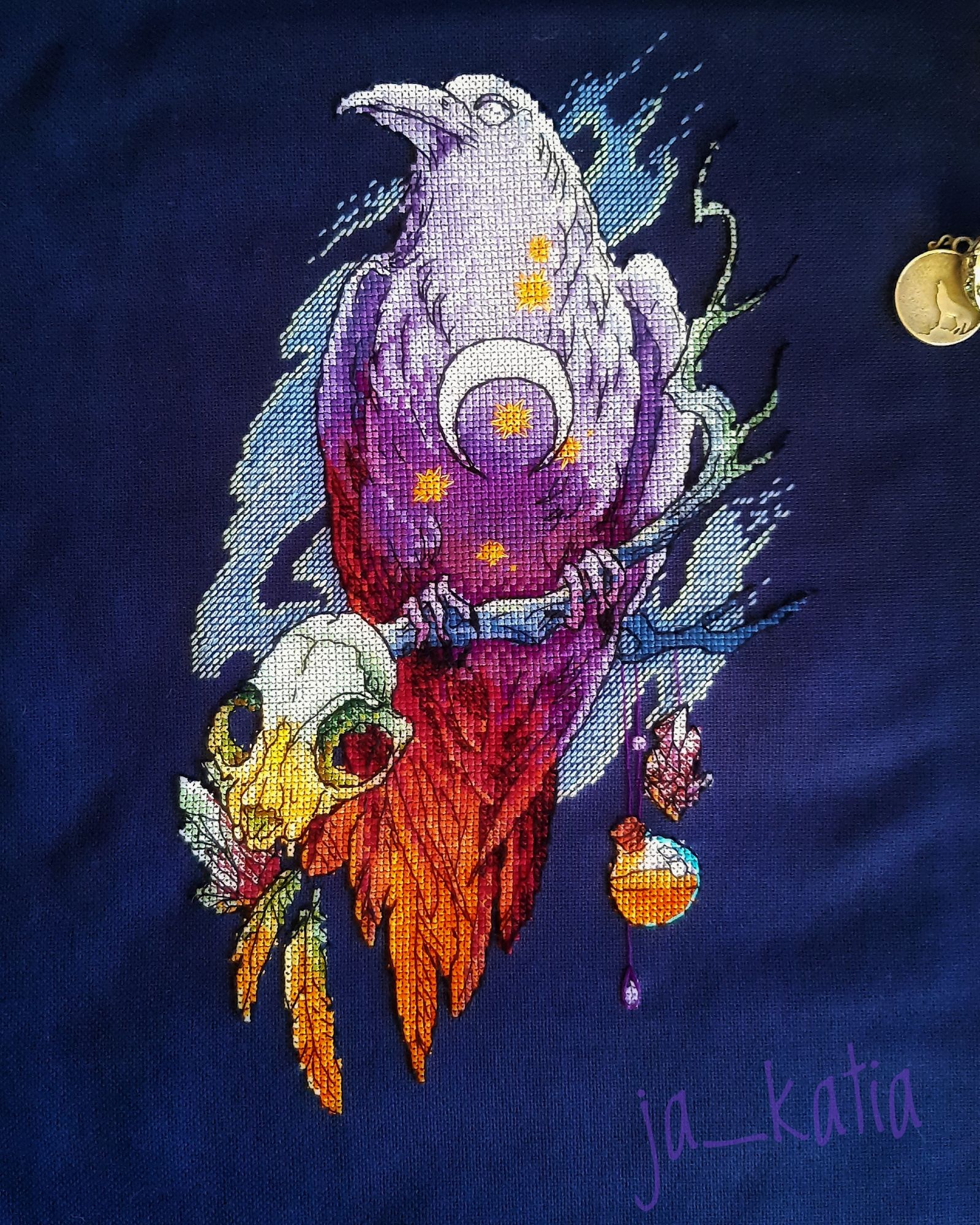 26 марта 2021 Мистический и фантастический, почти орёл ))) Эта схема попалась мне в ленте в VK и я потеряла сон и покой. Потрясающий БЕСПЛАТНЫЙ дизайн от Лёвы Летовой. Нарезку ниточек и основу (британи) заказала. Вышивалось быстро, схема хорошо проработана. Есть немножко петитов и несчётный бэк. Но этот пузырёк с зельем стоит каждого крестика S4astlivaja, Гало4ка, kreolka и 6 других сказали спасибо Поделиться сообщением Ссылка на сообщение