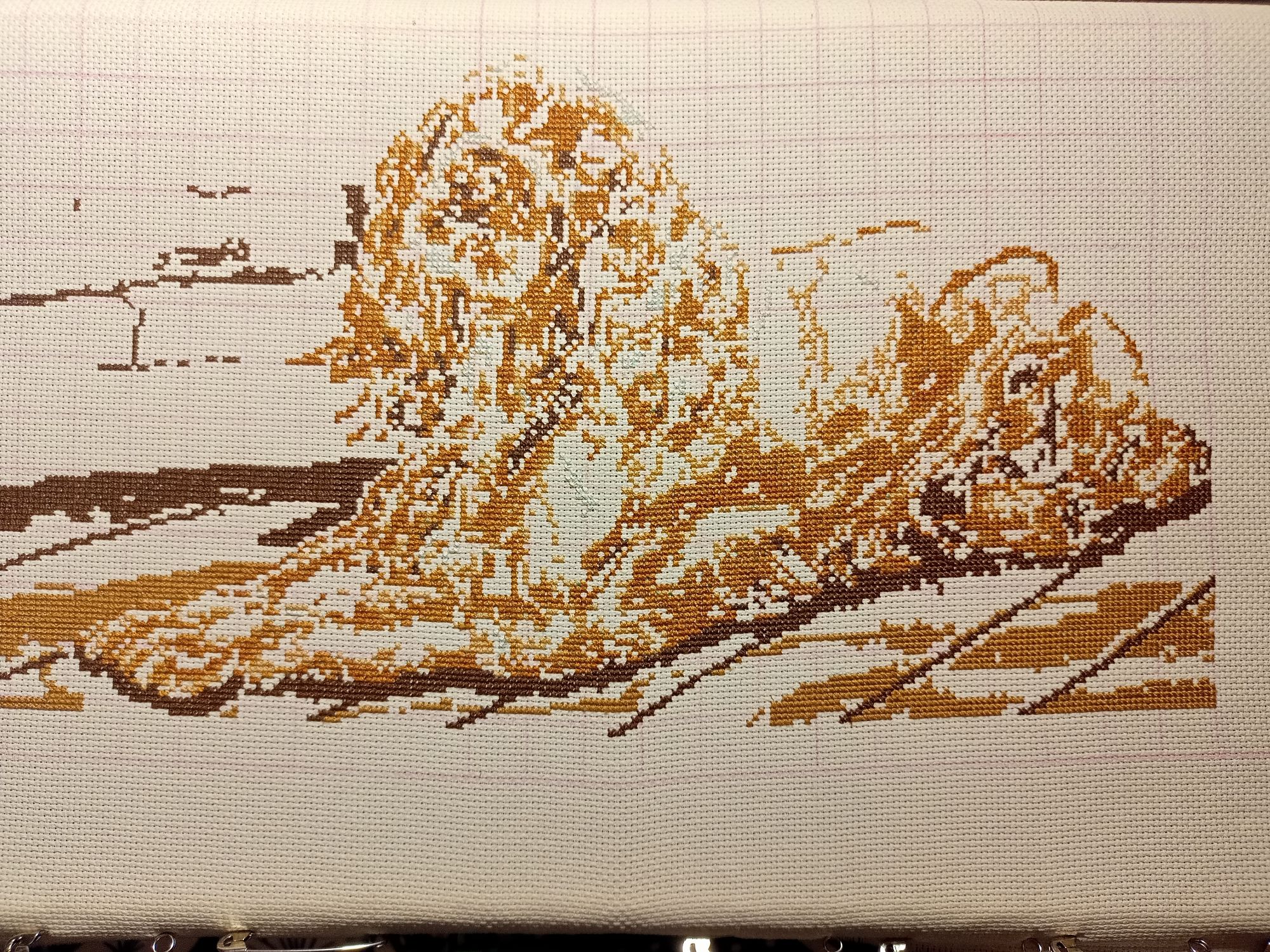 18 марта 2022 Мой очередной долгострой - тигр от Dimensions. Я почему-то наивно полагала, что он вышивается на 14 каунте, но оказалось, что на 18... А он даже в светлом варианте для моих глаз проблематичен. На чёрном совсем ничего не вижу , особенно чёрные и тёмные нитки, но буду хотя бы по чуть-чуть продвигаться. Было: Стало: + 227 крестиков. Холодная весна, Fluffy, rolihka и 13 других сказали спасибо Поделиться сообщением Ссылка на сообщение