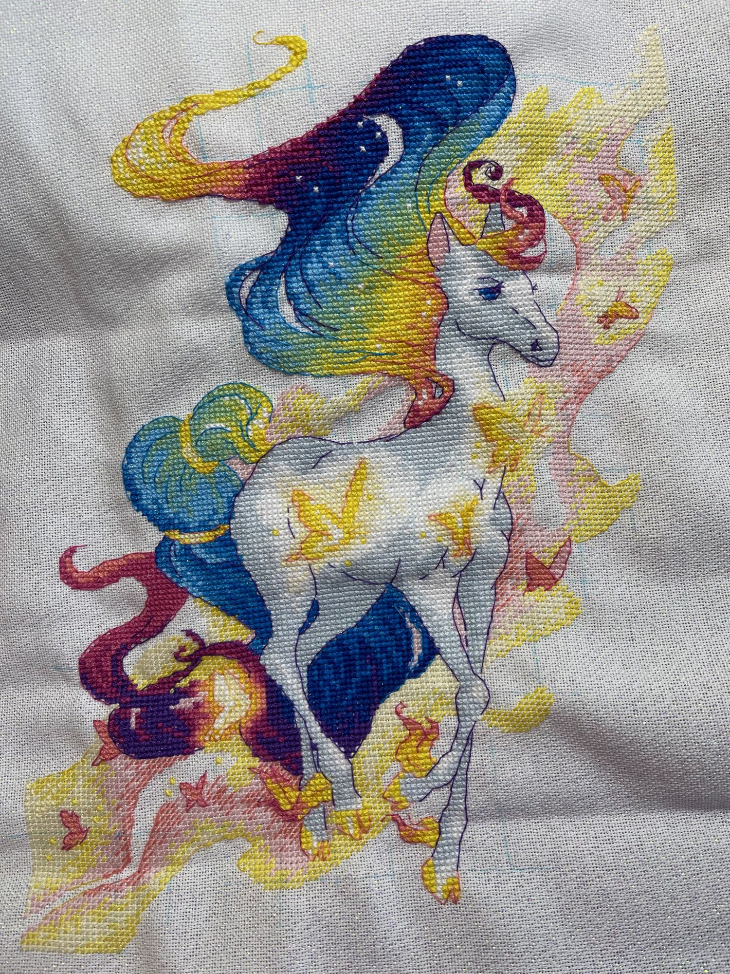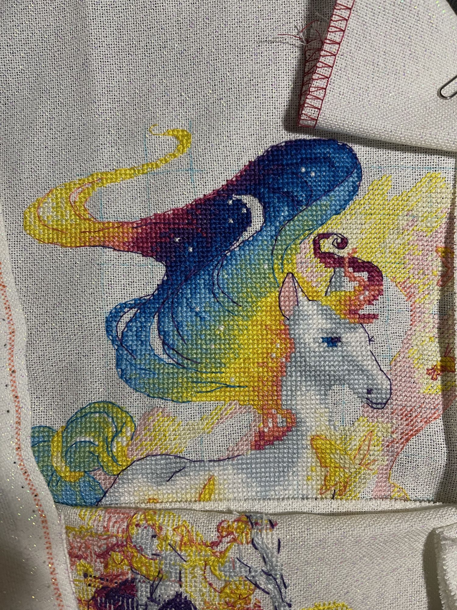 12 июля Вот, с утра добечила лошадку до конца, оказалось там немножко совсем осталось, еще на один отчет не хватит. Итого: на 11 июля 50 крестиков и 318 стежков бека. Еще один долгострой окончен, ура! Продолжу далее с шерстянушкой Риолис. Хочу еще блестящими стежками-звездочками украсить эту лошадку, но сначала нужно будет найти для них металлик. Или может и бисер тоже пришью? подумаю еще Ксен40, Капитанская_внучка, L.lilit и 7 других сказали спасибо Поделиться сообщением Ссылка на сообщение
