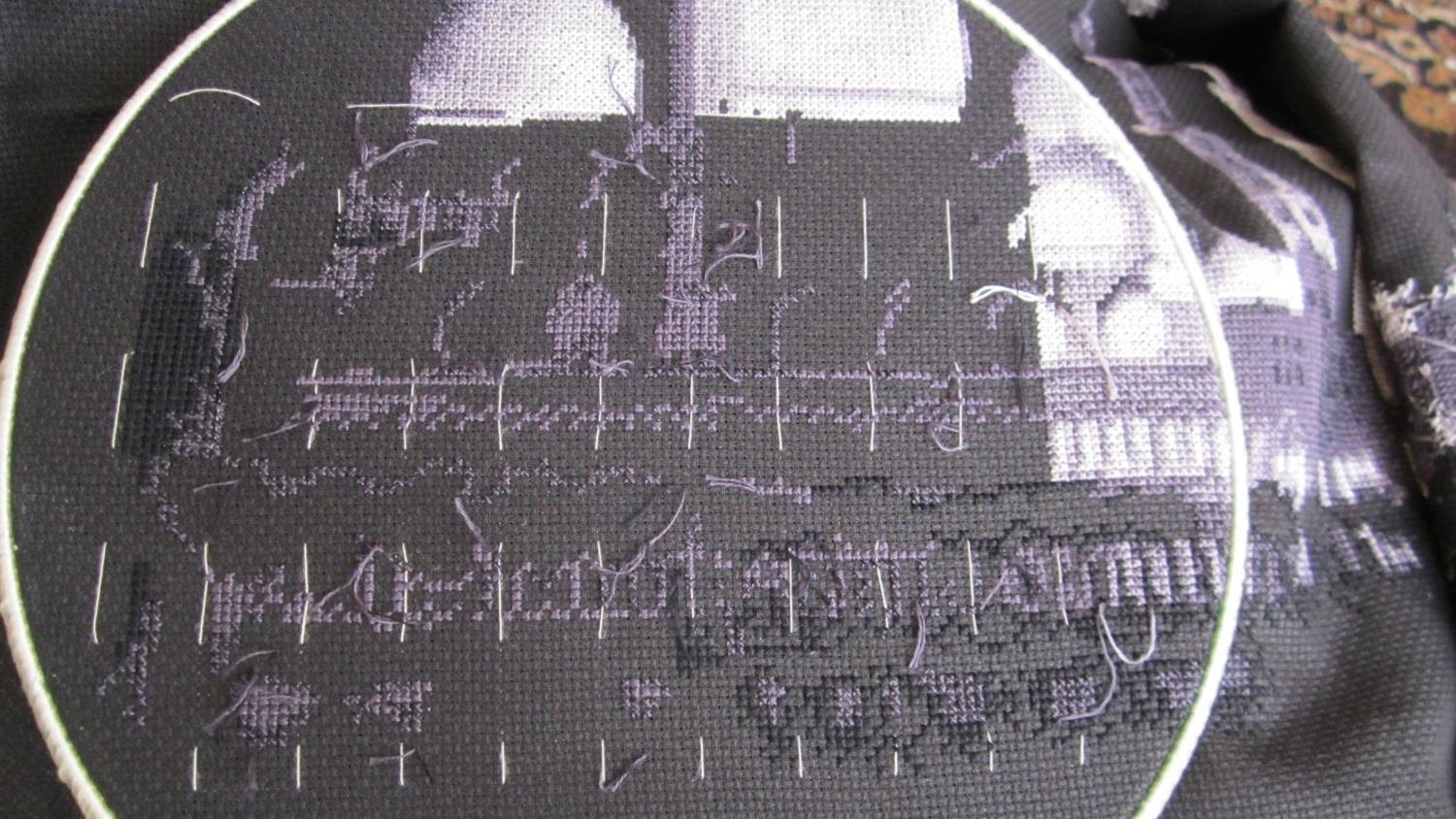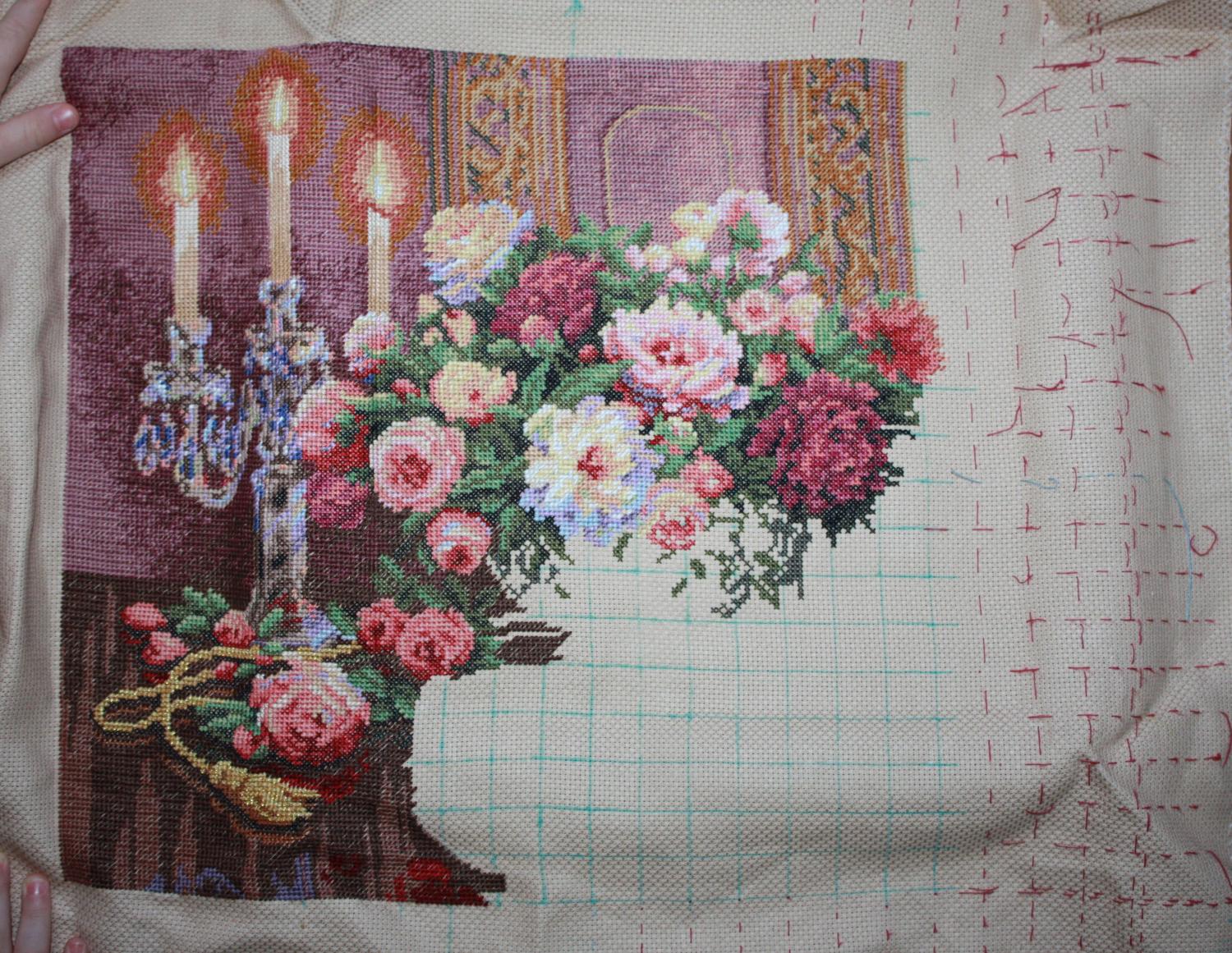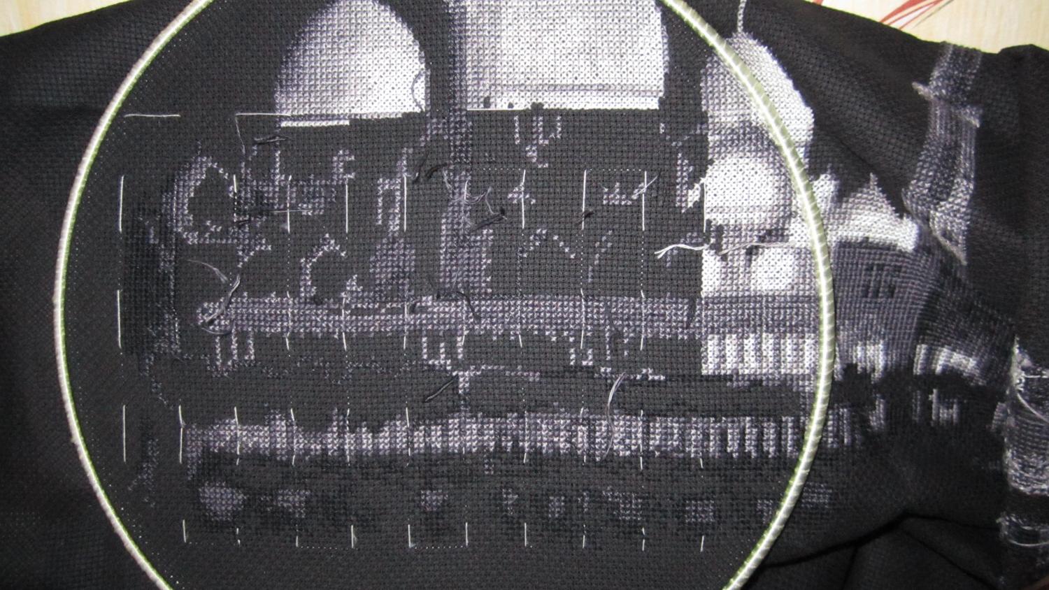 И общий вид работы перед перестановкой снапов!) Тканюшка вся закручивается обратно, пришлось ребенка просить придержать тряпочку)