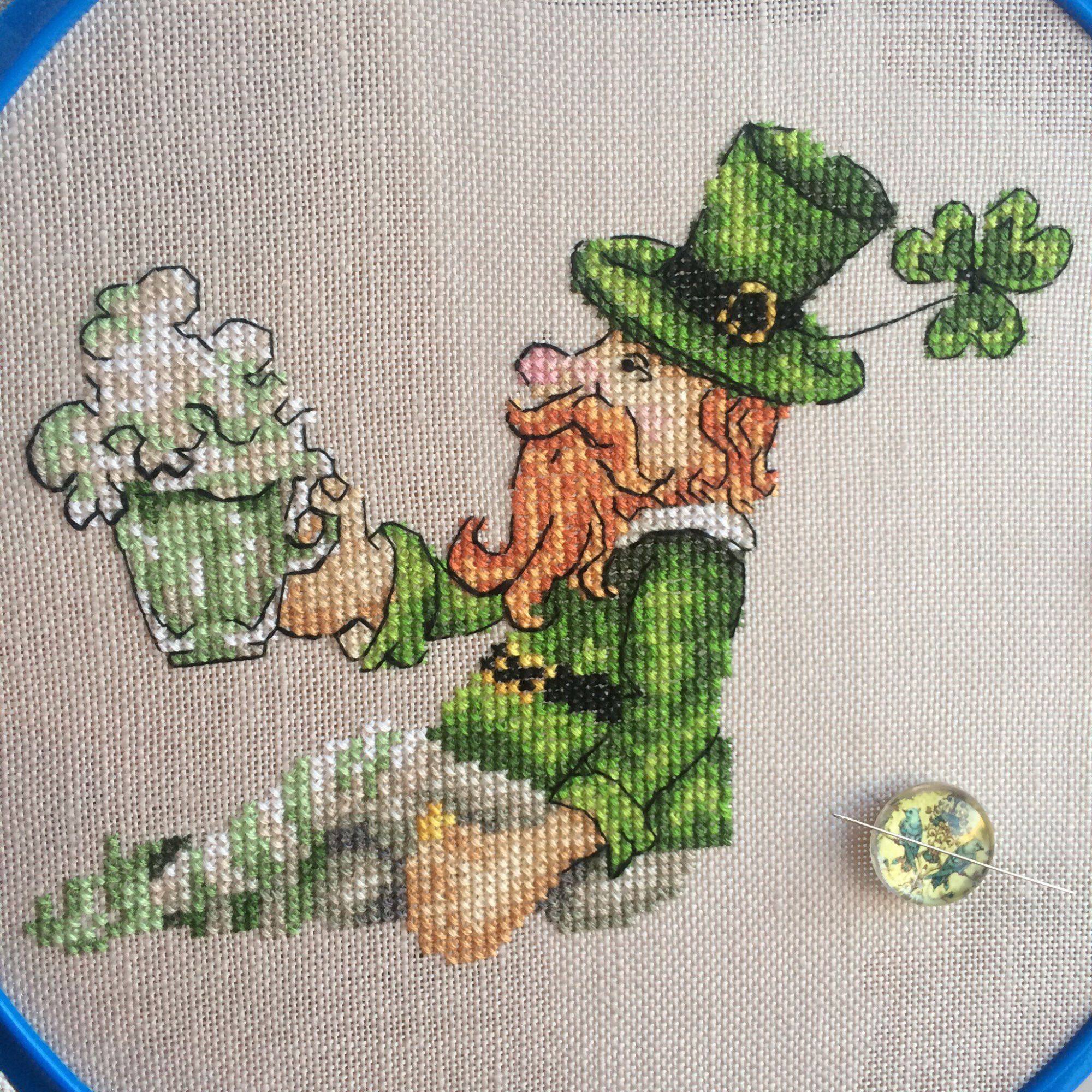 14 января 2018 Возвращаюсь в эту тему с новым процессом. Снова схема Анны Петуновой "День Святого Патрика". Как известно, день святого патрика отмечают в Ирландии 17 марта, в день моего рождения. А лепрекон стал символом этого праздника и я не смогла пройти мимо))) Надеюсь, этот старичок принесёт мне финансовое благополучие или исполнит три моих желания. Для основы вышивки выбрала кашель цвета горлицы, очень интересный оттенок, выглядит по разному в зависимости от освещения, от бледно-серого до пепельно-розового цвета. Нитки ДМС по ключу. nastygera, Welt, Люба К и 11 других сказали спасибо Поделиться сообщением Ссылка на сообщение