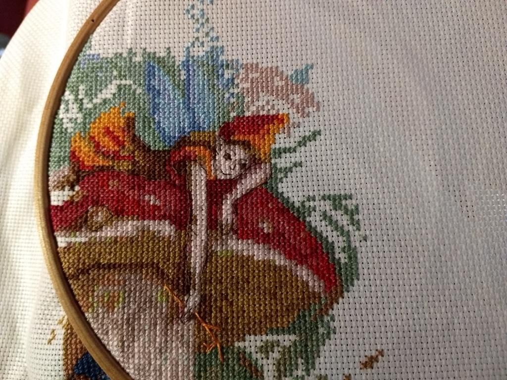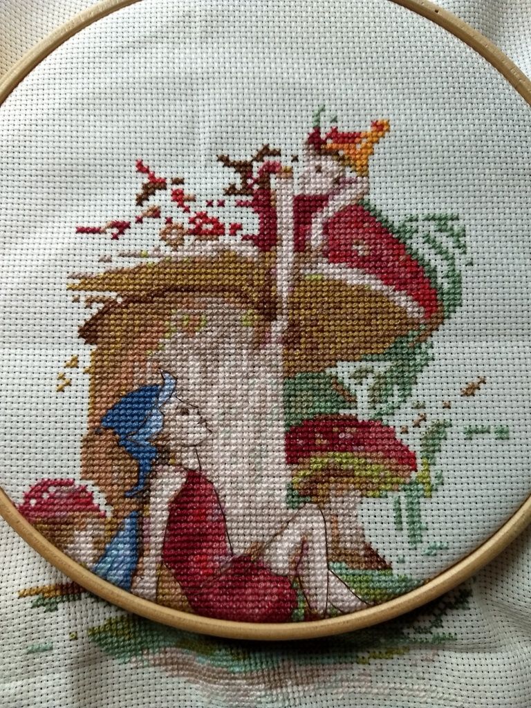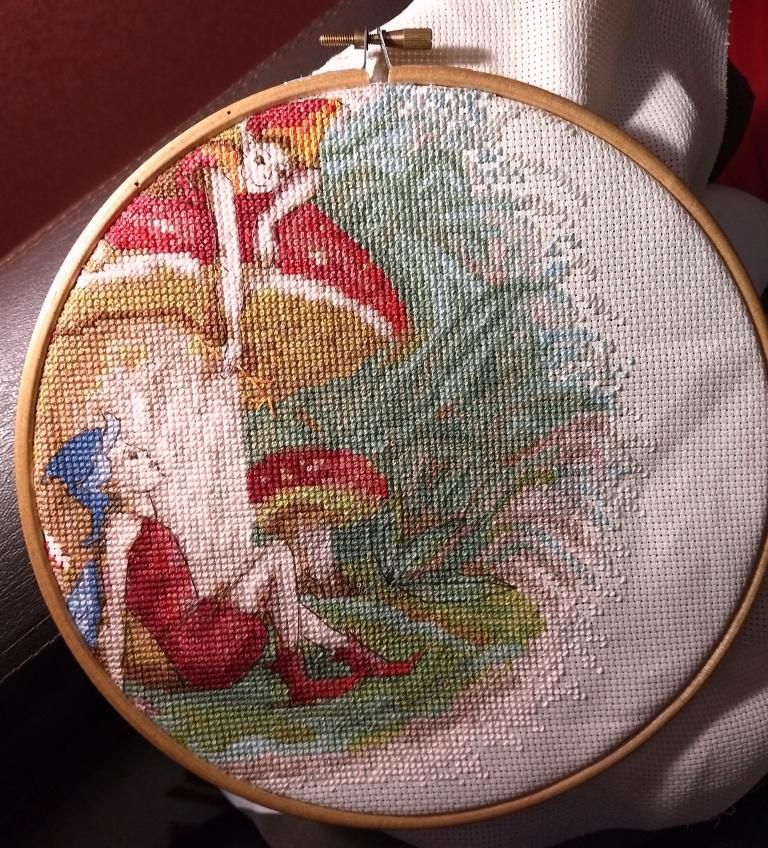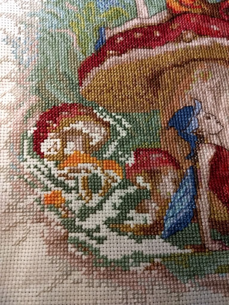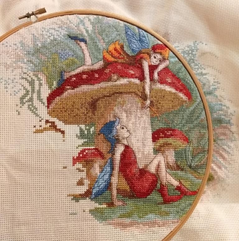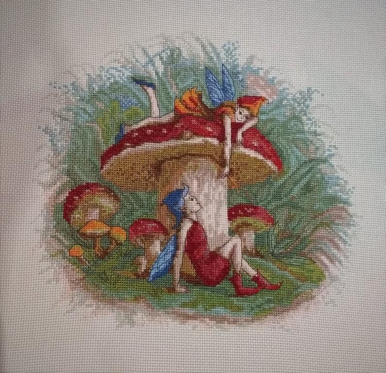 7 ноября 2019 Я их закончила! Очень приятный был процесс, несмотря на то что мне не понравился бэк на схеме и я шила его по велению левой пятки. Половину бэка убрала, потому что и без него грибы издалека достаточно четкие, а вблизи лучше эту вышивку не рассматривать: трава проработана с расчетом, что ее будут смотреть издали - хорошо видно ее только в этом случае. Пожалуй, это набор от Панны с наименьшим количеством ниток из всех ее наборов, что мне попадались. Несколько цветов дошивала последней пасмой, однако всего хватило. И, как это бывает у старых наборов от этого производителя, цвета результата не совпали с цветами обложки - результат гораздо ярче, уютнее и сказочнее. solnishko-ym, озюка, Iulia_Zhi и 21 других сказали спасибо Поделиться сообщением Ссылка на сообщение