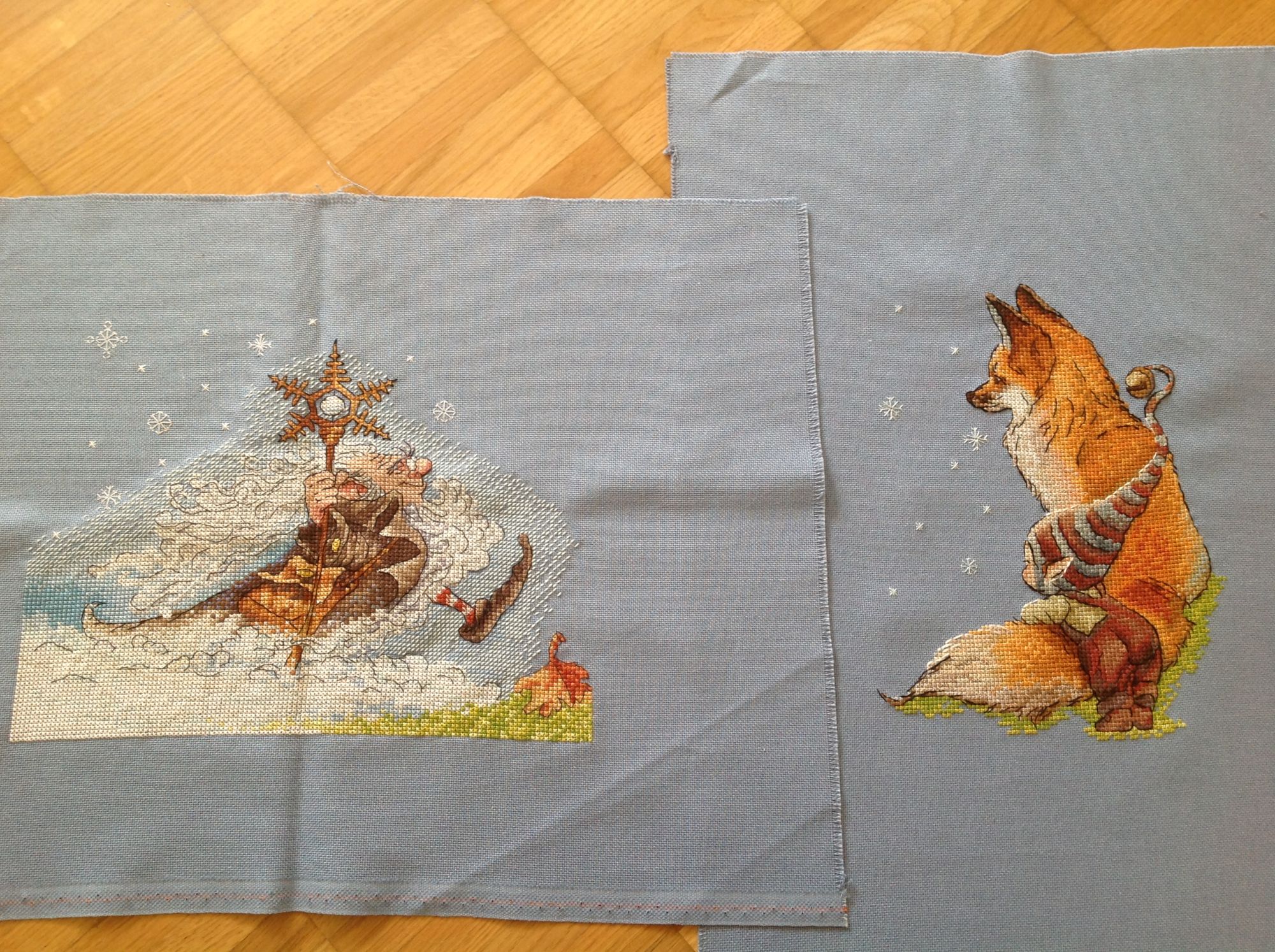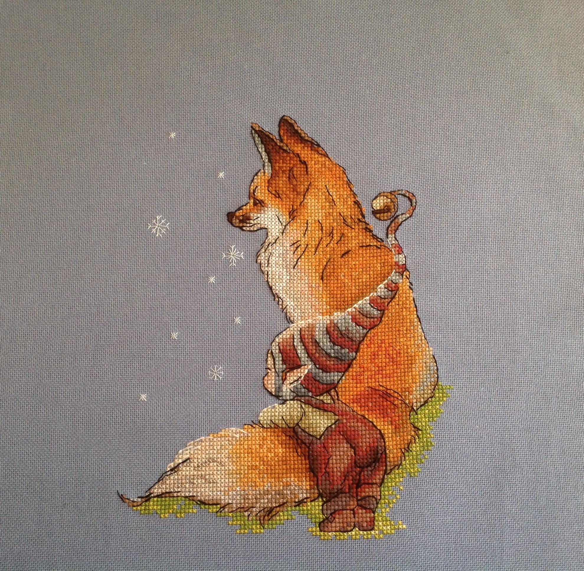 10 июля 2023 Овечкины забавы процесс завершён Не люблю переделывать схемы, но здесь пришлось это сделать, так как подгоняла эту работу под парный процесс, что бы сделать историю (фото не в гаечку). Вообще мне очень повезло, что у меня остался кусочек канвы, на котором я вышивала повелителя зимы, так как каунт и цвет я уже не помню) процесс был простым и приятным, немного перепутала номера ниток для бека, вместо белого в некоторых местах сделала чёрный, но перешивать не стала, не критично. Пыталась сделаться полукрест вокруг лисы и гномика, но в конечном итоге отказалось от этой идеи, смотрелось не очень, а вот снежинки пришлись к месту. Интересная история на мой взгляд получилась, старый год и Новый год, дедушка и внучок, смена времён года. У повлителя зимы есть рыжий листик, у внучка рыжая лисица, трава вышита одними и теми же цветами, тематика волшебство. Волновалась, а получится ли, но получилось и История повелителя зимы стала более полной, так же как и история малыша с лисицей. Zanfiska, nataliusha, Забава_ и 16 других сказали спасибо Поделиться сообщением Ссылка на сообщение