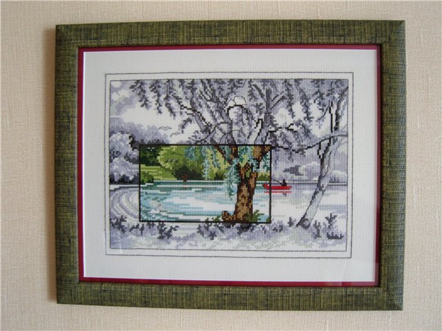 9 июня 2011 Еще одно фото, чуть дальше. За счет того, что рама неоднородно-зеленого, цвета в целом неплохо смотрится с той же неоднородной зеленью картины. Поделиться сообщением Ссылка на сообщение