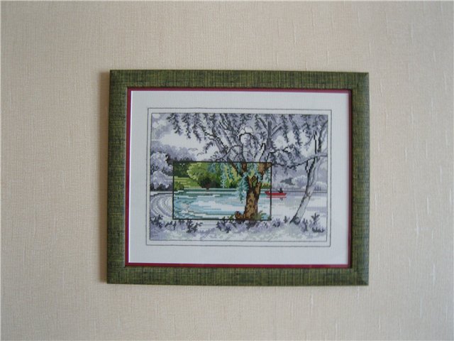 9 июня 2011 Еще одно фото, чуть дальше. За счет того, что рама неоднородно-зеленого, цвета в целом неплохо смотрится с той же неоднородной зеленью картины. А мне очень нравится! И это внутреннее паспарту так с лодочкой гармонирует - красота!!! Шахиня сказал(а) спасибо Поделиться сообщением Ссылка на сообщение