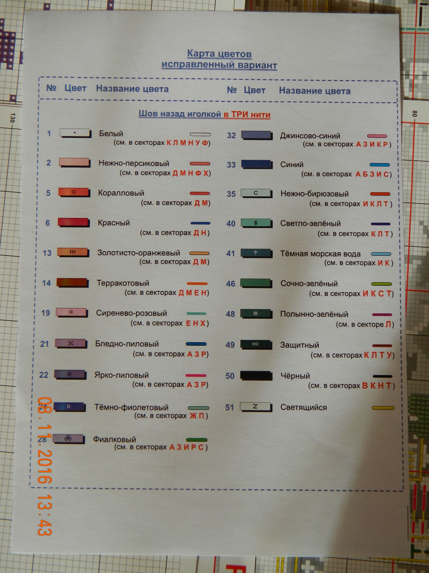 8 ноября 2016 2 часа назад, incomt сказал: Это исправленная разметка бэков. Год назад уже исправлено и листок не вкладывается. Когда к выставке торопимся новинку выпустить быстрей в свет-потом косяки исправляем Мне это ясности в неразбериху с цветами не внесло никак..... Вон у Маши точно так же, как и у меня в схеме, а листика с исправлениями нет... 1 час назад, zhmary сказал: Таааак, у меня другой бэк. Дмитрий, значит, у меня бэк неверный? Верный у Галины? Или цвета бэка верные, не верные сектора? Маша, у меня на схеме так же. Сравнила каждую строчку. А это вложенный листик был,который на фото....так что теперь получается? Поделиться сообщением Ссылка на сообщение