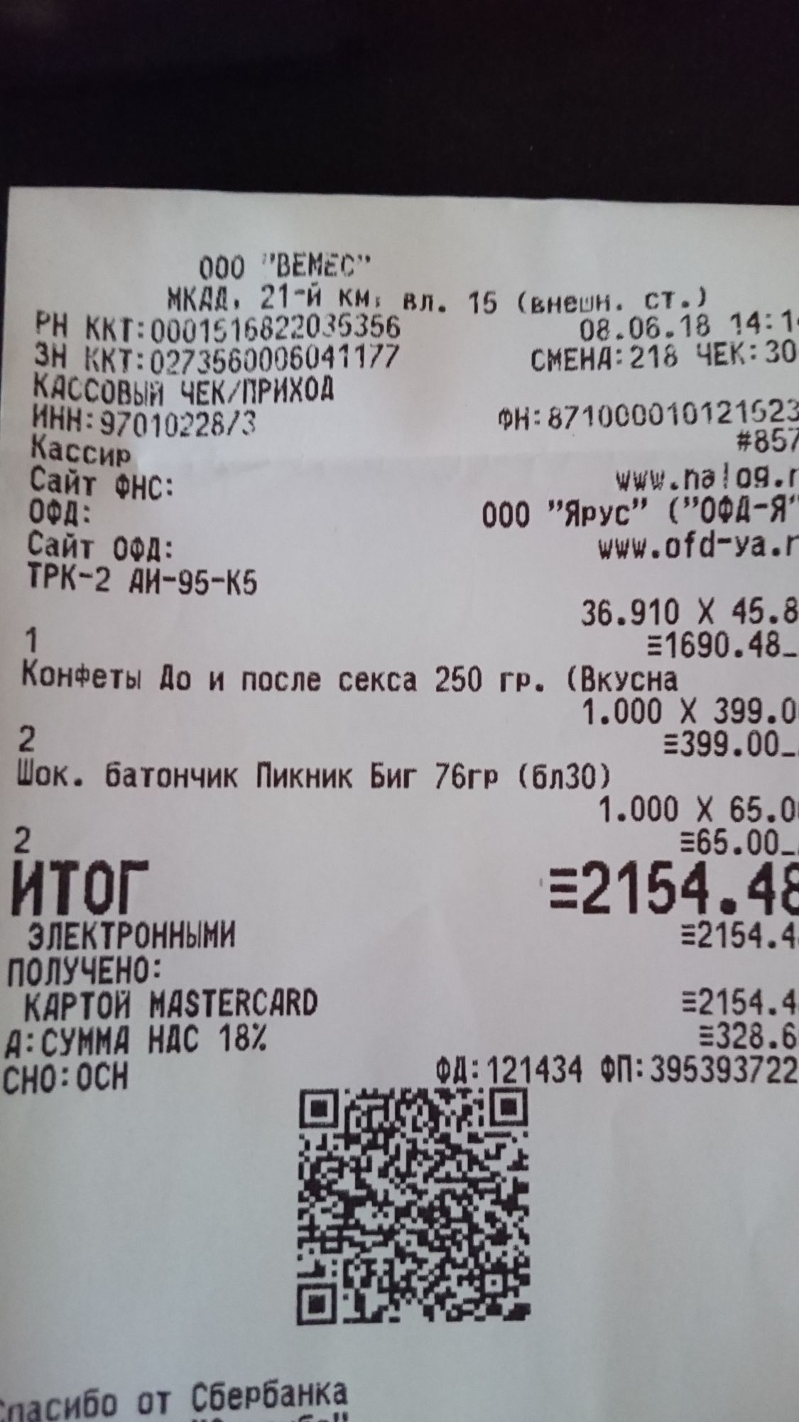 19 июня 2018 Разбираю чеки директра на заправку с АЗС и попадается на глаза вот этот - Наверно директор не только по служебных делам ездит Юла, Хозяйка смешных зверей, Antarktida и 39 других сказали спасибо Поделиться сообщением Ссылка на сообщение
