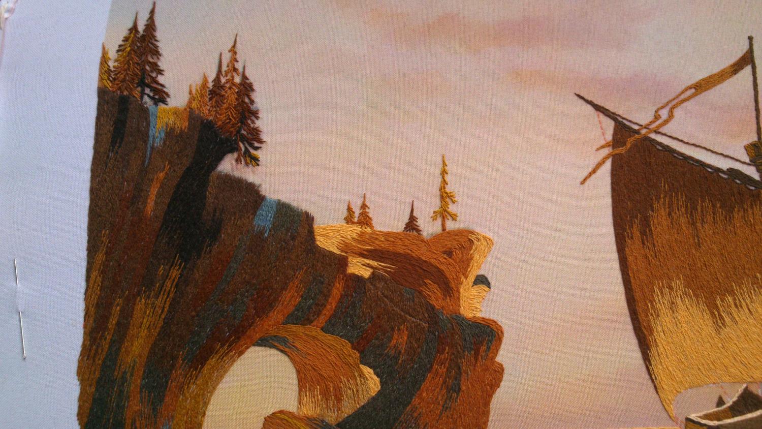 8 апреля 2013 Спасибо девочки Продолжаю шитьё Вышила гору и ёлки. Написано: вышивать елки хаотичными стежками, ориентируясь на области цветов.... И всё... Ну надеюсь что стежки получились достаточно хаотичными , потому как этот кусок оказался для меня самым сложным из всего. почему картина практически вся отшивается оттенками коричневого? даже если это и для начинающих... так и подмывает внести в этот дизайн немного других красок Наташ, ну там есть ишшо немного серого и зелененького. Щас шью палку, на которой сидит одинокий птиц, так вот- она получается не коричневая, покажу когда вышью побольше, а то тут по кускам вообще ничего не понятно что выходит, тогда и обсудим. veravas, Caragal, ЛАДОМИРА и 2 других сказали спасибо Поделиться сообщением Ссылка на сообщение