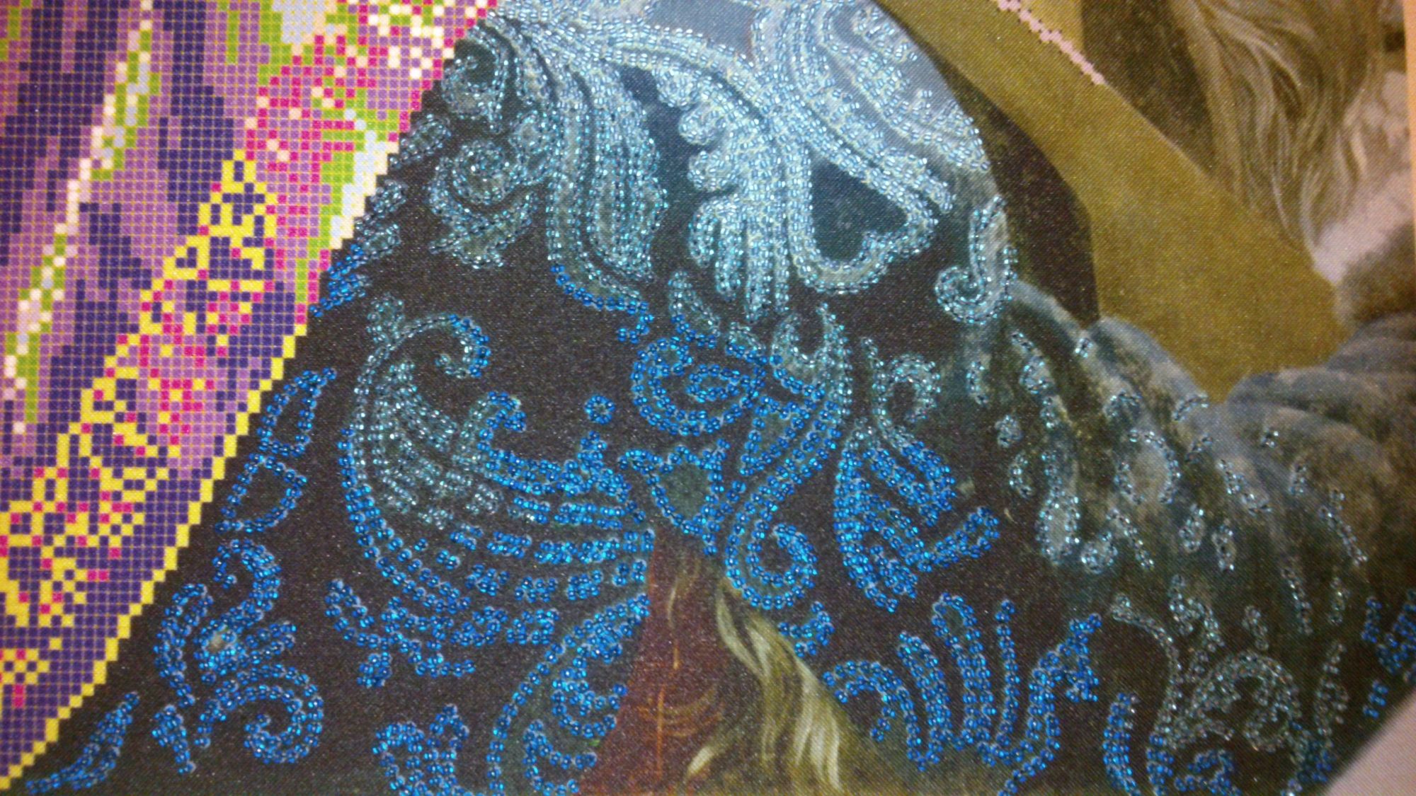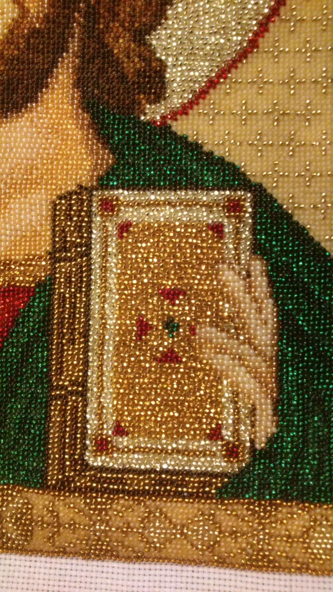 15 февраля 2016 Ну, можно позеленить ещё одну гаечку))) Спас Вседержитель Самая красивая икона, которую я шила. Ну и очередное "размножение" Картины бисером Р-072 Встреча http://www.stitch.su/kartiny_biserom/%D0%A0-072 Очень нравится основа, похожа на принт, которым комплектуется ДИМ с частичной вышивкой гладью, только еще проклеенный флизелином. В отличие от атласа легко прокалывается, бусики ложатся ровненько и не валятся потом в разные стороны. На рукавах очень темный фон, побоялась шить белым капроном, бисер-то на кафтане прозрачный, шила нитками в тон фона, благо цветов всего 3 Для всего остального сегодня купила мононить. Не знаю как пойдет, пойду пробовать. Mushuk, Shetka, Лена1973 и 3 других сказали спасибо Поделиться сообщением Ссылка на сообщение