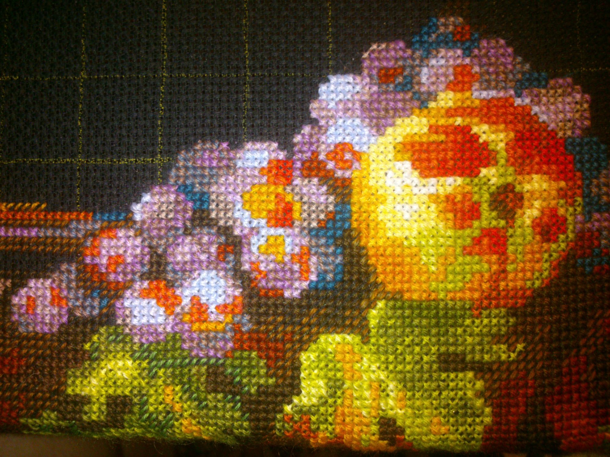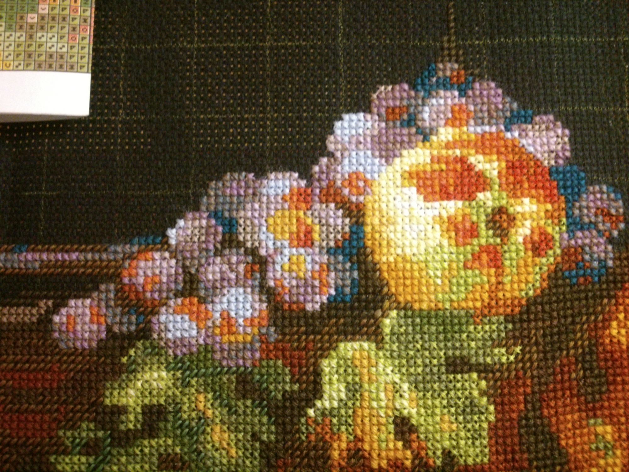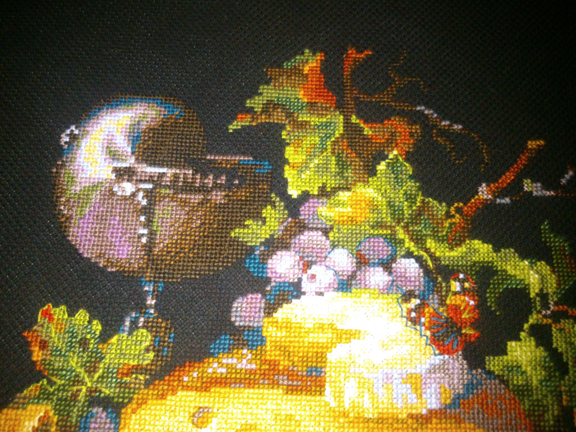 17 июля 2017 В 04.07.2017 at 19:09, Сердечко сказал: Инна, спасибо за процесс. Понаблюдаю с удовольствием. Люблю Риолис, черную канву , шерсть, натюрморты и сыр)) Аня, спасибо! Вот нашила немножко стол со скатёркой немножко фруктов фрукты со вспышкой ну и сыыыыр пара кусочков уж и не знаю что за сыр слева... гниловатый такой что ли ? В 04.07.2017 at 19:09, Сердечко сказал: И если можно, жду фото с комментариями о процессе. Комментирую. Шерсть шью второй раз в жизни, а уж такую вырвиглазную уж точно первый! Наверное уже доконало это зимнее лето и захотелось чего-то яркого, вот и шью. Шью неправильно. Полукрестики надо \\\, а я-///, но у меня географический кретинизм от таких \\\ . вот. но воде ничаво так выходит. Кресты в 2 нитки не хотят лезть в дырки и укладываться ровно, но если честно-мне пофиг. нравится и всё. Повторюсь- тема, сюжет и вообще всё не про меня, но видать на этом этапе мне это надо. Полукрест, крест в 1-2 нитки, блэнды, схема неправдоподобно лёгкая. вот в общем и всё. Девушка моя с укоризной машет мне шляпой, но пока не домахивается до моей совести. Начала большую сырную шайбу. дырки. Никто не знает, для похудения надо девушку в шляпе шить? или в руках тоже сойдёт? Безобразная погода успокаивает, что вообще раздеваться не придётся, вот я и расслабилась, дожралась до безобразного состояния + 5 кило и ничего летнее не налезает кроме трикотажа на резинках, а блин покупать что-то новое жаба душит.... А печеньки такииие вкусные Veta, ЛАДОМИРА, Yulik и 2 других сказали спасибо Поделиться сообщением Ссылка на сообщение