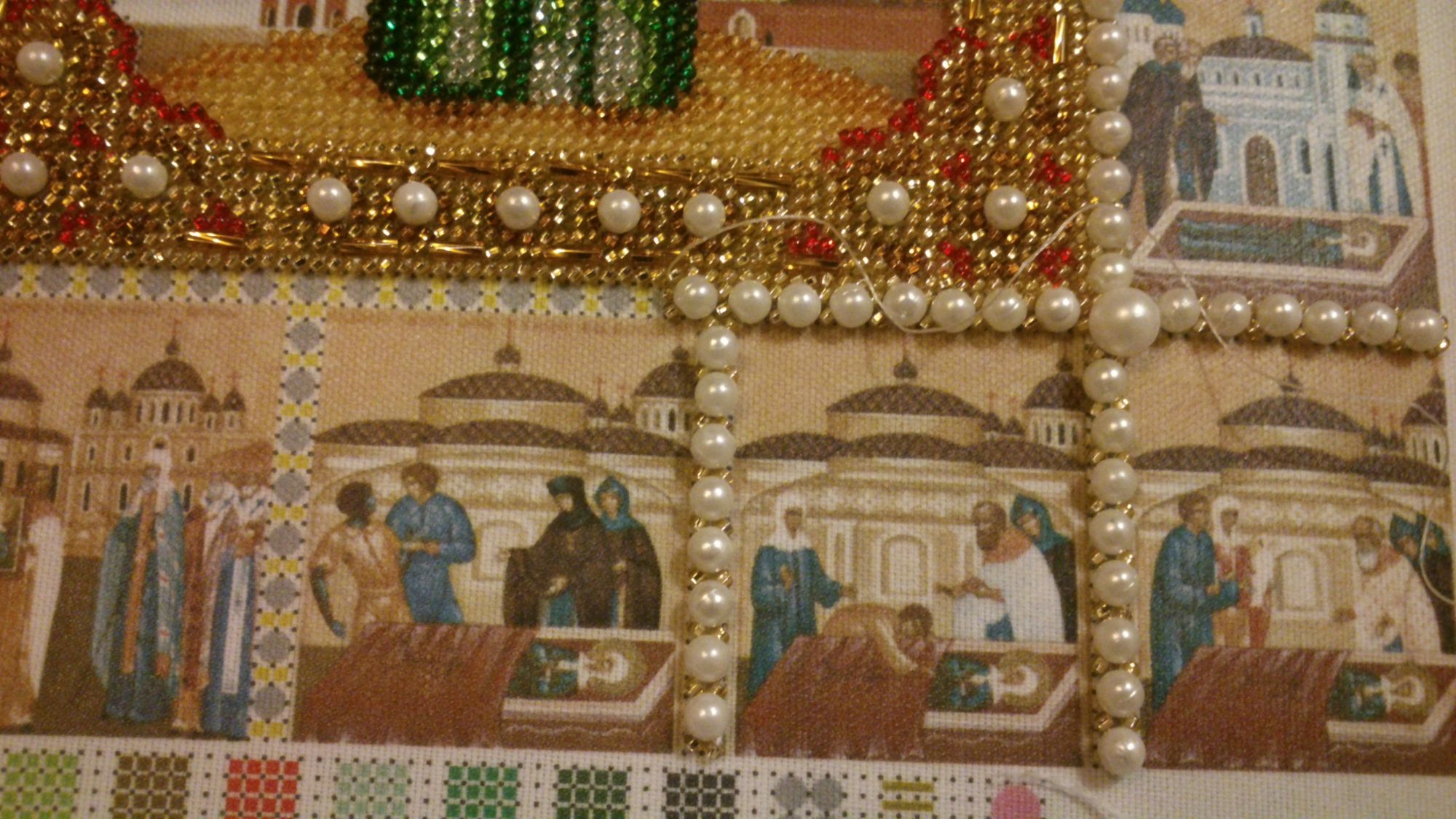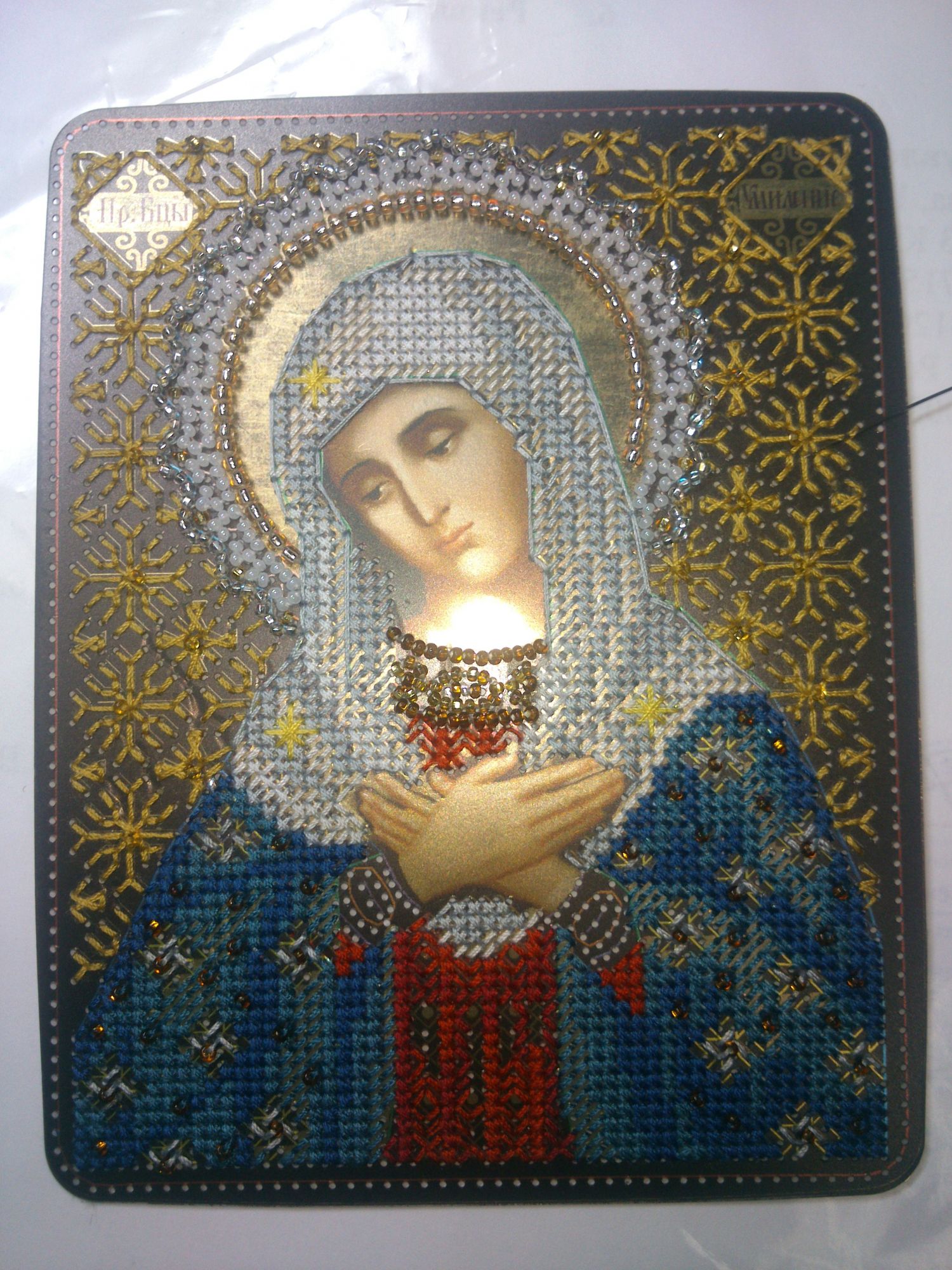 19 сентября 2017 Вот ниток осталось Ну что сказать? Не хватило 1, 17 и 18, свободно подобралось из запасов, не слишком довольна платьем, надо было 12 брать намного светлее, а то они с 11 почти одинаковые, поэтому складки на платье вышли не слишком объемными, только на плечах поменяла, пороть и перешивать не стала. Порывшись и телефоне, нашла незаслуженно проигноренный мной в заморочках процесс от Чаривной мити- Матроны, ну совершенно потрясающая икона! Девочки-модераторы, если можно, сделайте процесс пожалуйста, а то её почему-то никто не показывал https://www.stitch.su/charvina_mit/Б-1015 к сожалению это всё, через стекло дополнительно уже фотографировать не стала. Очень люблю её. Юнона1960, nata2017, Хозяйка смешных зверей и 3 других сказали спасибо Поделиться сообщением Ссылка на сообщение