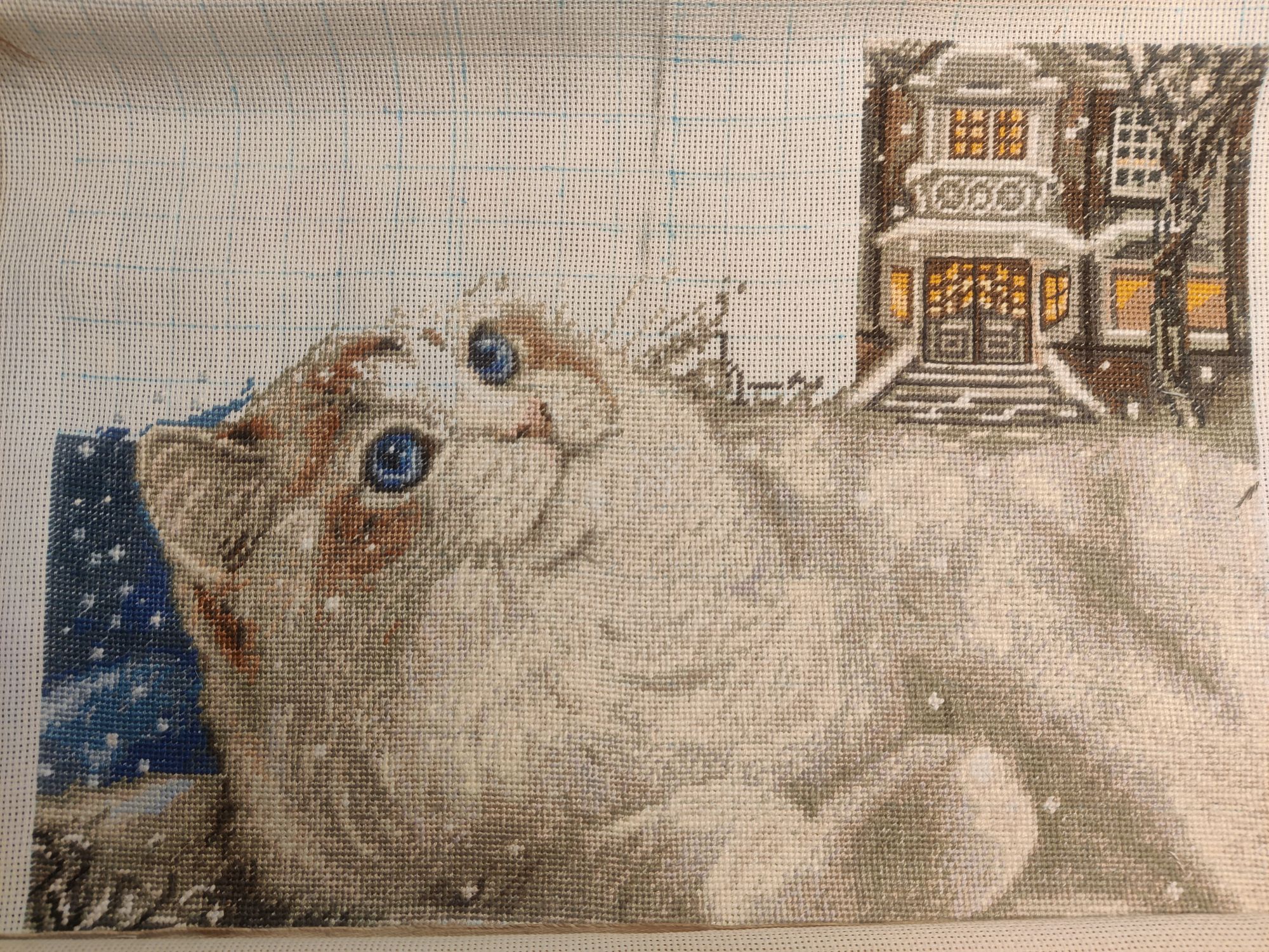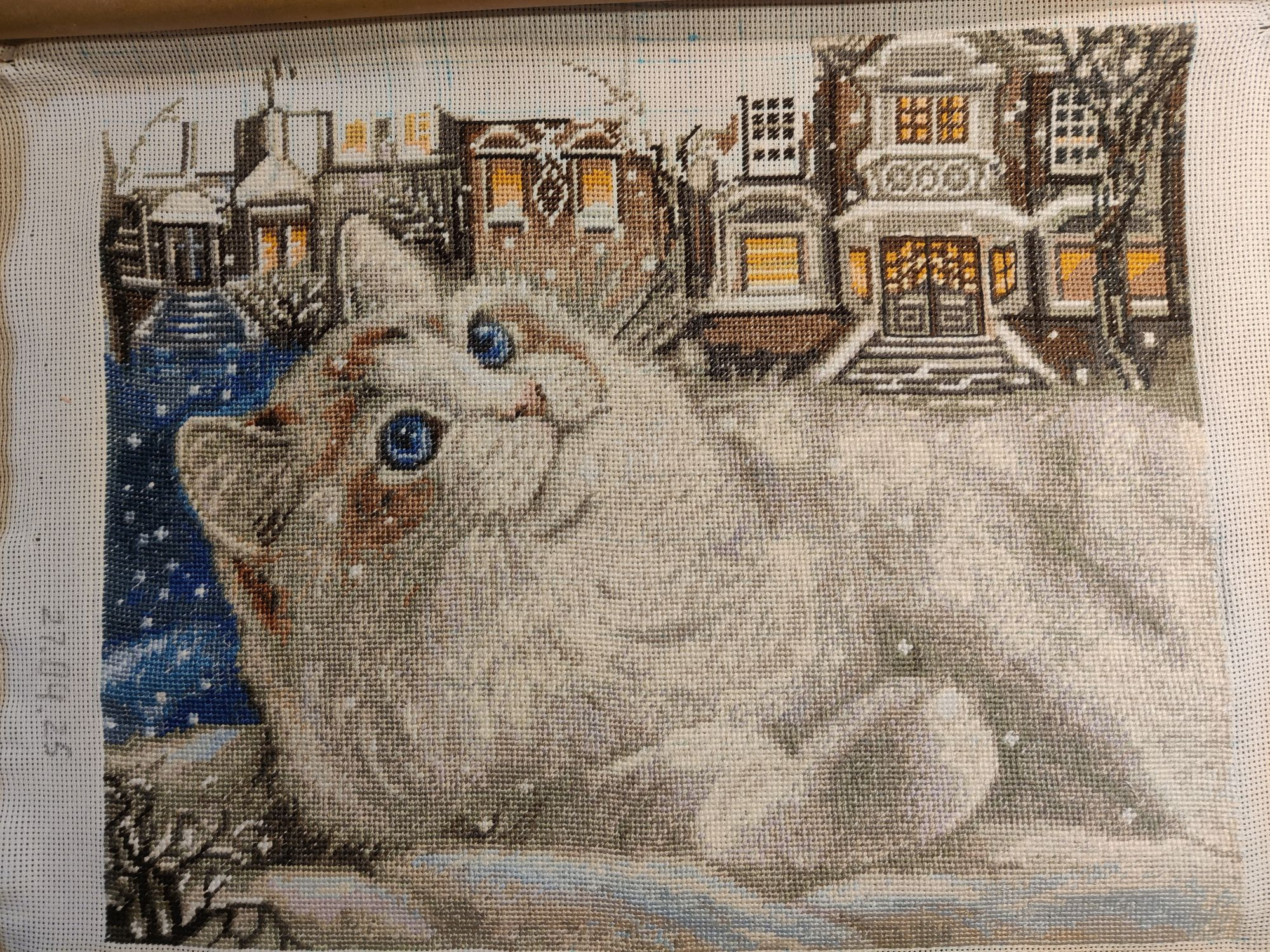 22 мая Всем добрый вечер, ну или день. Долго не была, события печальные Васю похоронила. Не буду ничего рассказывать, надеюсь ему теперь хорошо. Закончила старика Баз Махи не обошлось Село в высоту на 1.5, в ширину на полсантиметра, не могу сказать, что в восторге, ну закончила, простирала. В память о своем любимом коте начала китайский набор, не знаю как он там называется в самом деле, на сайте написано Сюжет набора по мотивам картины художника Татьяны Хазовой. Канва белая 14 ст. обработана, работа выполняется в 2 нити. Зашивка полная. Количество цветов - 41. Размер канвы 58*48 см, Размер рисунка (в крестиках) - 269*215, Размер рисунка (в сантиметрах) ~ 49*39. Кот в городе. Канву поменяла на 16 дырявую белорусскую, полукрест в 4 нитки. Прошу написать в описании 16- полукрест в 4. На 2-м фото кусок родной схемы, я отксерила с меньшей плотностью на чб и всё хорошо видно, схема простая. В понедельник отпуск на недельку. Ну и Клепочка Муж был неделю в командировке, Тараса приходил гулять сторож, все кошки были на месте, здороваться прибегали, ну и покушать, а этот... Короче шлялся неделю. Пришел вот когда мы приехали, спал и ел 2 дня, потом опять шляться ушёл. Ещё китайца на нанесенке начала, но даже не знаю как его снять, ну канву с нитками сняла, а чего вышито, только на изнаке видно, пойду попробую снять. Bogdan, Сибирская Кошка, Хозяйка смешных зверей и 2 других сказали спасибо Поделиться сообщением Ссылка на сообщение