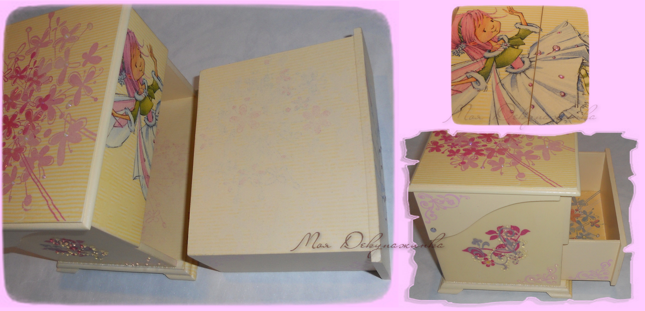 19 сентября 2012 Вот это отчет! Наташа - какая ты умничка!!! Комод - это прямо чудо какое-то! Я аж захотела быть маленькой девочкой, и чтобы самой поиграть на таком комодике!!! очечник и часики - Наташа - ты мастер с большой буквы! Здорово!))) Кафешка хоть и не так быстро, но все же продвигается, значит скоро будет и конец!) Я тут тоже решила подекупажить ! Делаю домик для чая, как только закончу - обязательно покажу!))) Спасибо за вдохновение!) Львица сказал(а) спасибо Поделиться сообщением Ссылка на сообщение