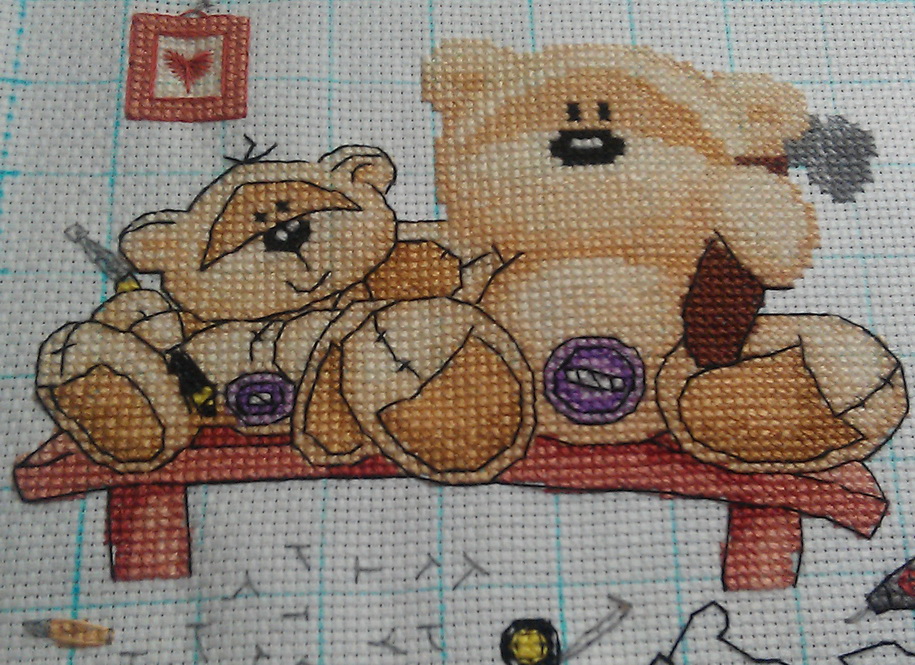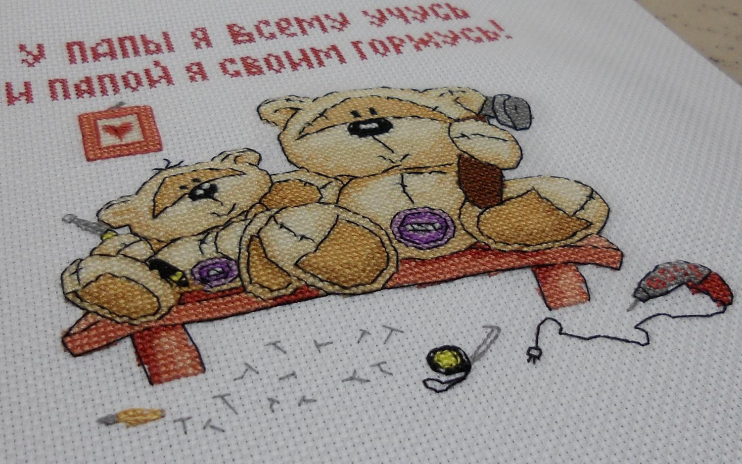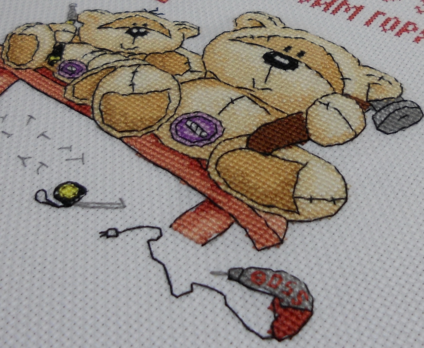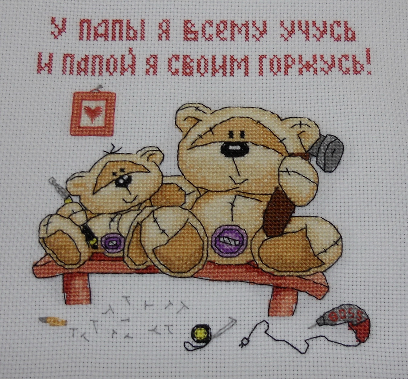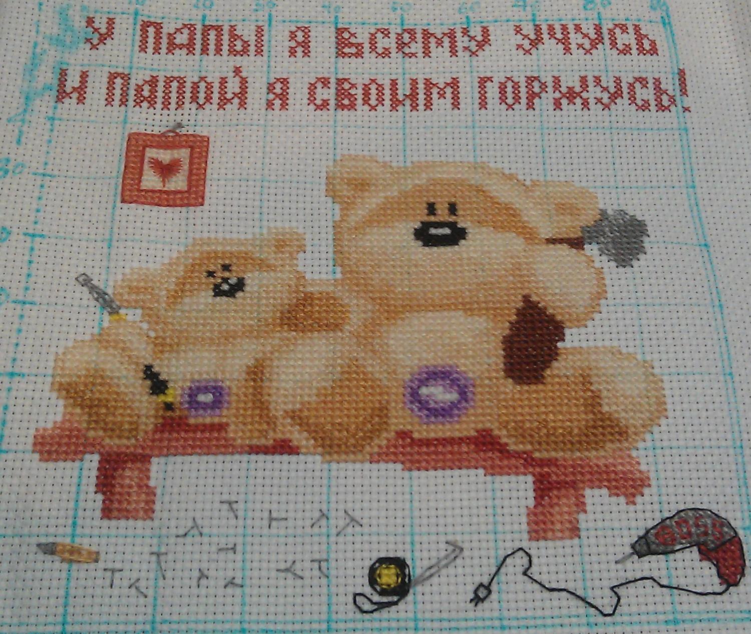 12 октября 2011 Девочки с пятницы корпела над мишками.. Минус два дня на интернет-магазины и всякую ерунду... Сейчас буду переделывать график вышивки - основной процесс (садик) будет не основным а параллельным - очень много надо успеть сделать подарков до Нового года! А до этого надо начать (и желательно закончить тоже!) свой первый ДИМ - мамин подарок на прошедший день рождения (О, МАМ, ПРИКОЛЬНО - ты будешь вышивать мой подарок, а я твой!!!), потому что это был первый ДИМ, ставший моим и я обещала маме, что первым вышью именно его, а среди подарков и новогодних дизайнов будет много ДИМов, так что надо торопиться. Поэтому садик буду вышивать всего лишь дня три в неделю - если все успею до Нового года раньше, я лучше его ударными темпами махну потом.. А пока.. МИШКИ!!! Такими я их начала делать в пятницу а вот прибавилось и еще.. и пуговки и молоточек и отверточка и Пуговкины любимые гвоздики и глазки у мишек.. а вот рулеточка какая! а это дрелька! фирма - БОСС, как папа а вот и рамочка прибавилась (пробовала новый для себя вид украшалки в виде сердечка..) Поделиться сообщением Ссылка на сообщение