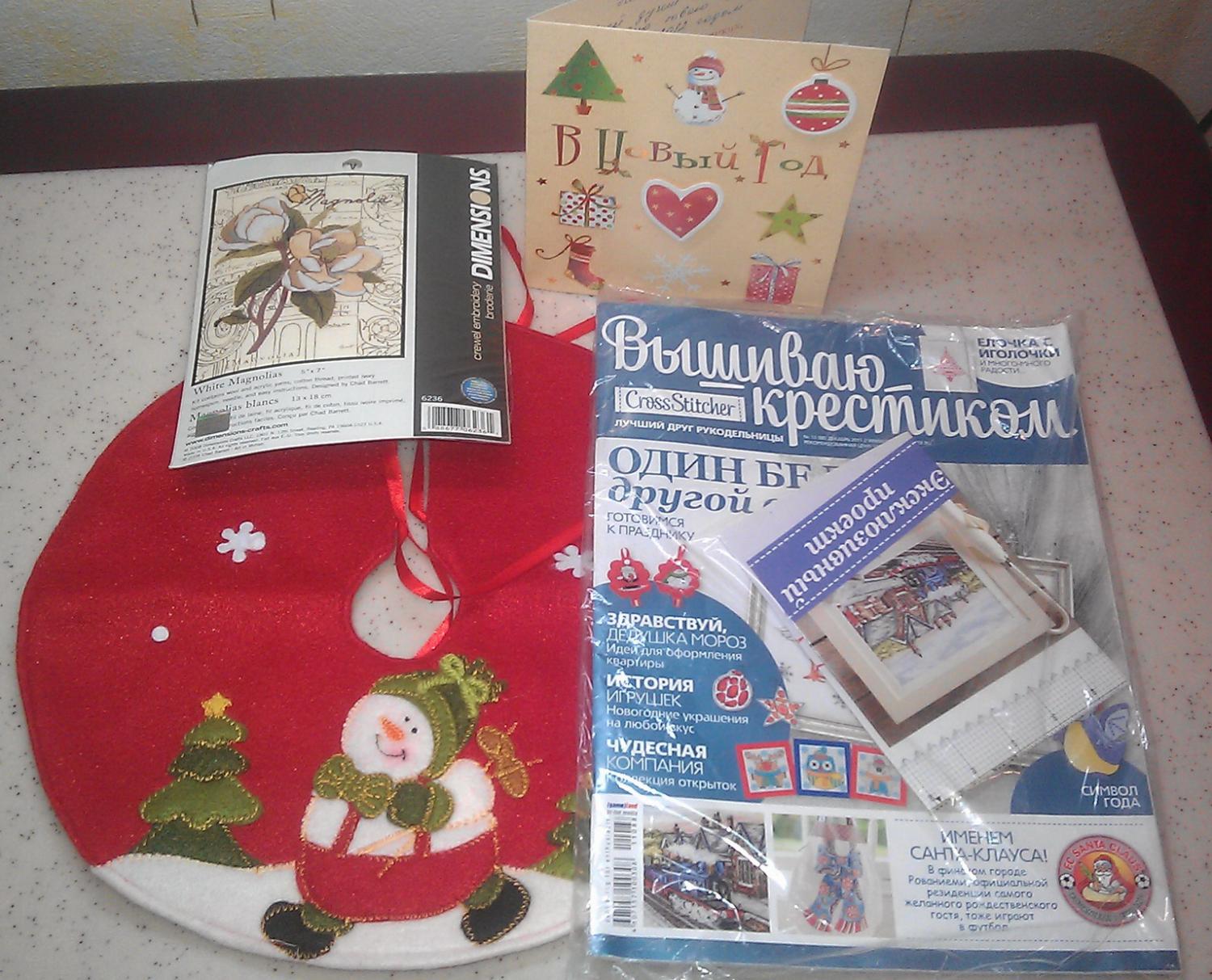 16 декабря 2011 Писала-писала сообщение, а страница хоп! и закрылась! ррррр ТАНЮШЕЧКА!!!!! СПАСИБИЩЕ ОГРОМНОЕ!!!!!!! ТАКОЙ ТЫ МНЕ СЮРПРИЗ ПРИСЛАЛА КЛЕВЫЙ!!!!!!! Ну мне теперь со своим подарком.. нет подаришечкой.. очень неловко... чесслово.. Все, что прислала, просто моя мечта!!! Во-первых, давнишняя моя хочушка - "Белая магнолия" вышивка гладью от ДИМ Во-вторых, юбочка под елочку! Обожаю всякие штучки из такого материала или из фетра!!! Дальше - новогодний выпуск ВК!! Тут таких вообще нигде не найдешь! Пойду налью себе ройбуша, усядусь в кресло и помедитирю с ним И еще - открыточка! С объемными детальками (тоже люблю такие!) И общий вид: Танечка, спасибо тебе! Ты принесла праздник в мой дом! fikus-1 сказал(а) спасибо Поделиться сообщением Ссылка на сообщение