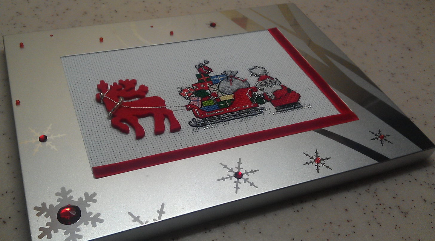 22 декабря 2011 Девочки, добрый вечер! Ура, надеюсь, что скоро фотик вернется ко мне, а пока покажу две фотки. Сначала немного предистории. В нашей семье вышивали и моя бабушка, и моя мама. К сожалению, от бабушки вышивок не сохранилось вообще, хотя я не потеряла надежду найти хотя бы кружева, связанные ею крючком. Мама вышивала в юности очень много. Одним из первых воспоминаний были вышитые наволочки, подзоры и накидушки на диван.При чем вышивала мама не только крестом, но и гладью. Но, к сожалению,со временем почти все было утеряно или подарено ( мама вообще щедрой души человек!). Осталось всего несколько вещичек, но и они в плачевном состоянии. Вот, например, на эту наволочку мама выкладывает пироги из духовки, поэтому она промаслена так, что наверное ее уже невозможно будет привести в нормальный вид: Но одну наволочку я все-таки смогла спасти! Хотя тканюшка на ней уже начала расползаться, но краски не потеряли своей яркости. Я увезла эту наволочку и отдала в багетку на оформление. В субботу маме исполнилось 75 лет, и вот эту оформленную работу я ей подарила. Все ахнули, а папа сказал: " Ну надо же! Была дырявая наволочка, а стал- ШЕДЕВР!" Теперь я мечтаю найти и оформить то, что еще осталось от маминого рукоделия.... Кстати,если кто-то заглядывал ко мне в галерею, то первая работа была слизана с этой наволочки- я просто считала крестики и переносила на канву. Правда, у мамы это вышито не простым крестом, а болгарским Надюша, долгих лет твоим мамочке и папочке, вышивка в таком оформлении шедевральная, как же красиво смотрится болгарский крест, спасибо что показала Ооооооой, ну как здорово, Леночка, что тебе все понравилось!! Я так рада! Я так старалась, что испортила первый вариант с Сантой над Лондоном.. Красила канву красками для батика, закрепила их по всем правилам (парила час на кастрюле, полоскала в уксусе, стирала в горячей-холодной, утюжила) и получилась вот такая красота . Потом я ее разметила, вышила (вот такой он был красивый до стирки ) и буквально на 3 секунды опустила в воду, чтобы исчезла разметка и..о кошмар! она полиняла! и канва стала блееедненькой, более того весь желтый стал зеленоватым... блииин.. расстроилась.. решила покрасить все сверху разведенным акрилом, и все было хорошо пока не взялась за луну - вообще акрил сохнет очень быстро, я сначала сделала небо, потом воду, потом вернулась на небо к луне, но не учла, что тут акрил на ткани! А ткань-то сохнет не так быстро!! В итоге желтый акрил расползся и вокруг луны появился милый зеленый ореол(т.к. желтый с луны смешался с синим с неба).. да елки!!! выкинула.. в сад.. и начала все заново, но на этот раз изначально красила акрилом. И поскольку же здорово спешила, то нет совершенно ни одной фотки ни процесса, ни результата.. Теперь только Ленины.. Ну с оборотной стороной - она, конечно, не доделана это мягко сказано, но я торопилась уже отправить, а так ее бы покрыть еще многими слоями лака и задник тоже.. Просто придумала это буквально в последний момент - ну так не эстетично выглядел сзади серый пластик! Теперь про открытку - с ней вообще какое-то волшебство. Я знала, что тебе нравятся всякие кошечки-собачки (как вот и Пуговке, например, откуда и выбор дизайна), и приглянулась мне эта серенькая кошечка у камина, что ни искала - все равно возвращалась к ней. Но думала переделать ей цвет шкурки.. нееее.. только серая! 