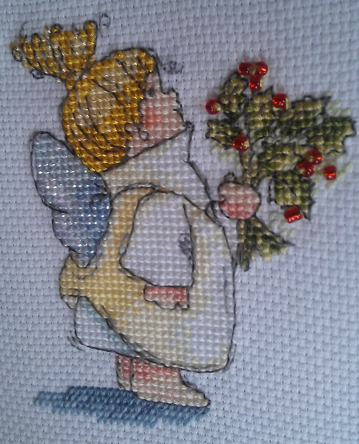 24 декабря 2011 Ну что ж, вот и еще один мой подарок пришел к нашей Сашеньке в большой куче многих других замечательных подарков. Остался всего лишь еще один сюрприз и все.. Немножко поподробнее о Сашулином подарке. Открытка на Новый год - эту Анкоровскую феечку я мечтала вышить очень давно, и давно собирала на нее ниточки. И очень-очень понравился результат! Хотя он и отличается от оригинала (вообще сдалала вывод, что если хочется получить Анкоровский дизайн именно таким, каким он изображен, надо покупать именно анкоровские нитки, иначе тона получаются другими) Возможно, я себе потом все-таки вышью такую же. Добавила бисер вместо фрузиков на букете, металлик в волосы и перламутровую нить на крылышки. В жизни она очень нежная. Но бэк.. хуже анкоровского бэка нет! Что котенок для Пуговки, что эта феечка - бэк идет везде где попало, но только не через дырочки! А это - оригинал Бискорню - сделана по схеме из журнала. Конечно без переделок не обошлось. Сзади подпись - моя, но вышитая. Вместо буквок, сделала ку-снапики. Вот оригинал. Очень долго делала - изначально хотела сделать такого размера, чтобы прицеплялась на ножницы. Жесткая канва показалась мне почему-то сюда неуместной (и почему?!), начала делать на мягкой 18 аиде, но там были очень большие дырки и внутренний наполнитель мог бы вылезать или просвечивать.. не понравилось. И вот вместо того, чтобы сделать просто подкладку или приутюжить дублерин изнутри (ну как просто!), я заказала в одном магазине равномерку. Одну ее заказывать не будешь, пришлось еще что-то набирать. А магазин промурыжил меня месяц с этим заказом (чтоб я еще туда хоть раз!), в итоге пришлось по срочному заказывать в другом магазине (и опять же одну ее не закажешь - бискорнюшечка получилась позолоченная шутка), а когда равномерка пришла пришлось уже все делать в очень срочном порядке, т.к. времени было уже мало. Кстати, с заготовкой для открытки была почти таже история - только заказанная заготовка просто не подошла по размеру и пришлось ждать другую (спасибо маме - выручила своей). Поэтому очень переживала, чтобы моя посылка вообще успела прийти до назначенного срока общей отправки. В итоге, это моя первая работа на равномерке. Не привычно было считать через две нити. Но в принципе, нормально - восторгов нет, но и отвращения тоже. И получилась бискорню не на ножницы, а обычного размера. Подпись всю сделала в программе, но поскольку переносить бэк без всяких ориентиров на равномерку очень непросто, то перенесла только собственно подпись, а надпись-пожелание просто сразу написала смываемым маркером, потом сверху сделала бэк. Почерк, конечно, при этом не сохранился, ну да и не страшно. Украшена бубенчиками. Поделиться сообщением Ссылка на сообщение