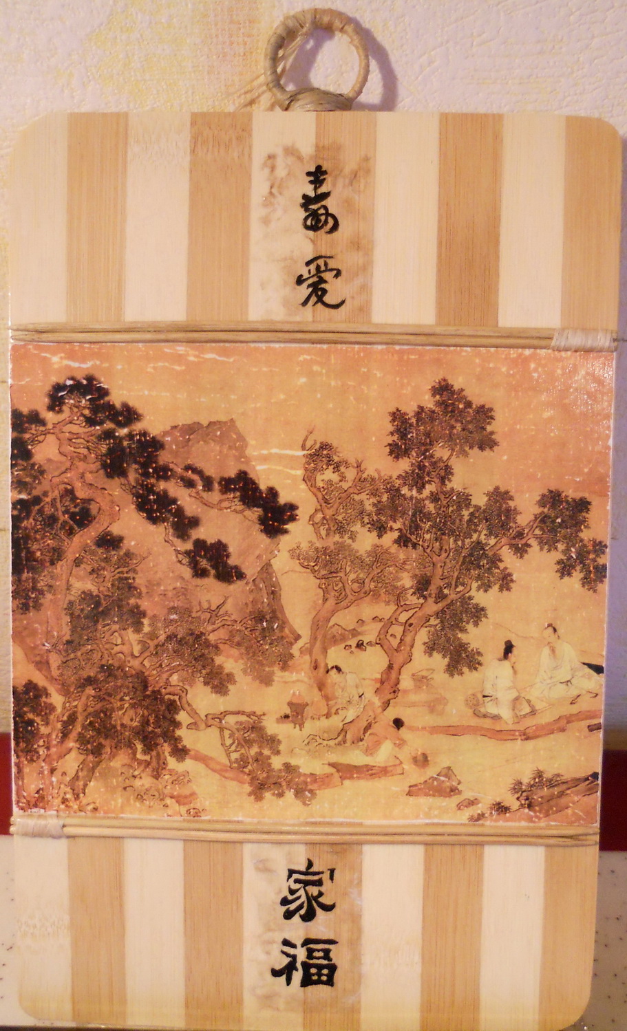 26 декабря 2011 Девочки, забежала на минутку похвастаться своими первыми декупажинками. Обе в подарок. 1.Досочка бамбуковая. Техника старения изображения, имитация рисовой бумаги и моя первая каллиграфия (сама писала иероглифы и естественно знаю значение - сверху вниз - долголетие и любовь, ниже изображения семья и счастье). поближе а это другим фотиком 2.Изображение в бамбуковую рамку - техника старения и кракелирования. Поверхность нарочито неровная Не судите строго, все же первые работы. Еще две в процессе Поделиться сообщением Ссылка на сообщение