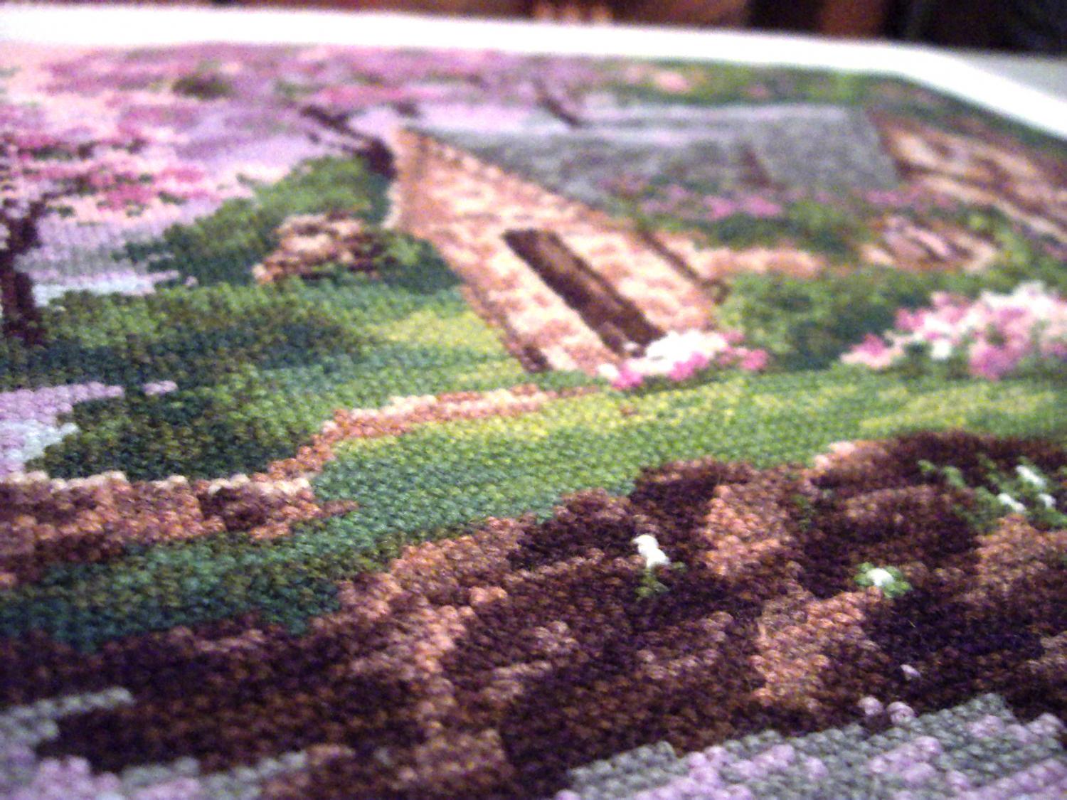 7 февраля 2012 Девочки, ура! Я дома! Первым делом побежала стирать вышивку! И вот- ТАДАМ!!! Мой весенний пейзаж закончен!!! Принимайте! Шился пейзаж с удовольствием, шерстяные ниточки мне очень даже нравятся, рисунок в реальности такой объемный, сочный! К набору нет совершенно никаких нареканий. Ниток осталось практически еще на один отшив ( если не хватит, то совсем чуть-чуть). Схема цветная, четкая. 1-го февраля начала вот эту давнюю хочушку- пятнистую кису ( так и не определила, кто это- леопард или гепард). Я очень люблю монохромы, когда из одного цвета получается рисунок. В этом наборе используется полный крест и полукрест в двух направлениях. Шьется с удовольствием! Правда, немного напрягают нитки Мадейра- после Анкора и ДМС совсем никакие, и все-таки путаются. Но экватор я уже перешла! Поделиться сообщением Ссылка на сообщение