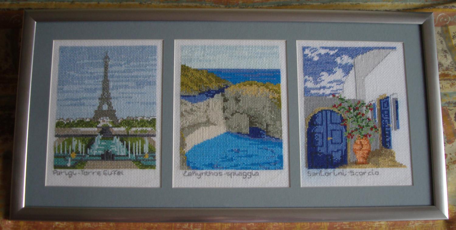 и свои первые оформленные работы. Посмотрела их поближе и ужаснулась- все крестики в разные стороны! Но это мои первые работы, и дороги мне как память, так что пусть будут!