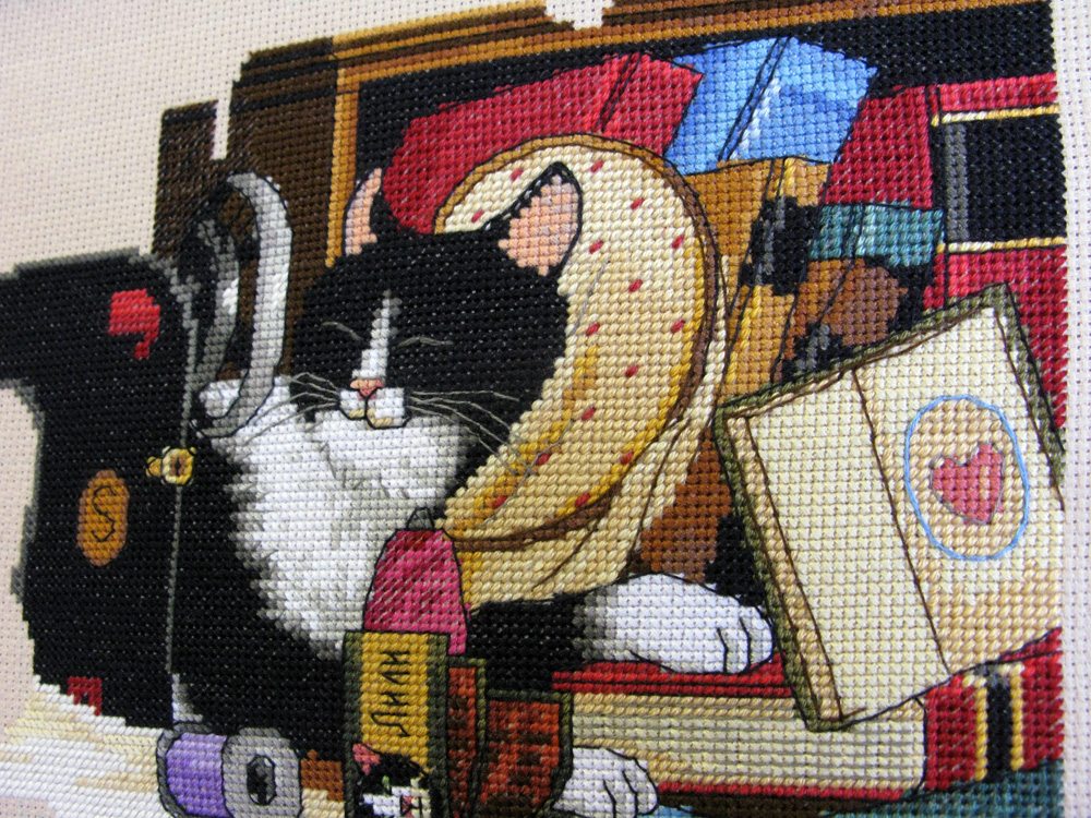 1 апреля 2013 liana, Дикая белочка, rukiseleva, PUPSIK1000, она самаЯ, Большое спасибо за такие приятные отзывы! прошедшие две недели посвящались превращению Мэгги в Лили первую неделю я шила всё вокруг головы главной героини и неожиданно легко изменила окрас левой лапки потом думала, что схему по изменениям окраса моськи сначала в программе сделаю но когда дошло дело до первых крестиков начала шить "на глаз" без схем... это было моей ошибкой шью и кажется, что получается как надо, а когда отшивались соседние цвета, становилось не очень похоже на Лили в результате мордочке от меня досталось... порола три раза... но ! методом проб и ошибок... я , несмотря ни на что, сделала из Мэгги - Лили было стало отшитый кусочек поближе и само превращение в сравнении с оригиналом у Лили, конечно, больше черного цвета, чем у Мэгги и моя вышивка в центре будет темнее, ведь там и машинка черная и шубка у Лили но зато там будет вышита МОЯ котеечка! Nat717, Дафна, Wian и 15 других сказали спасибо Поделиться сообщением Ссылка на сообщение