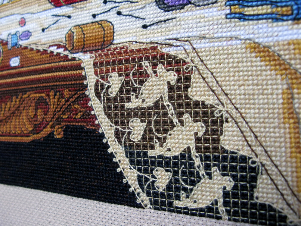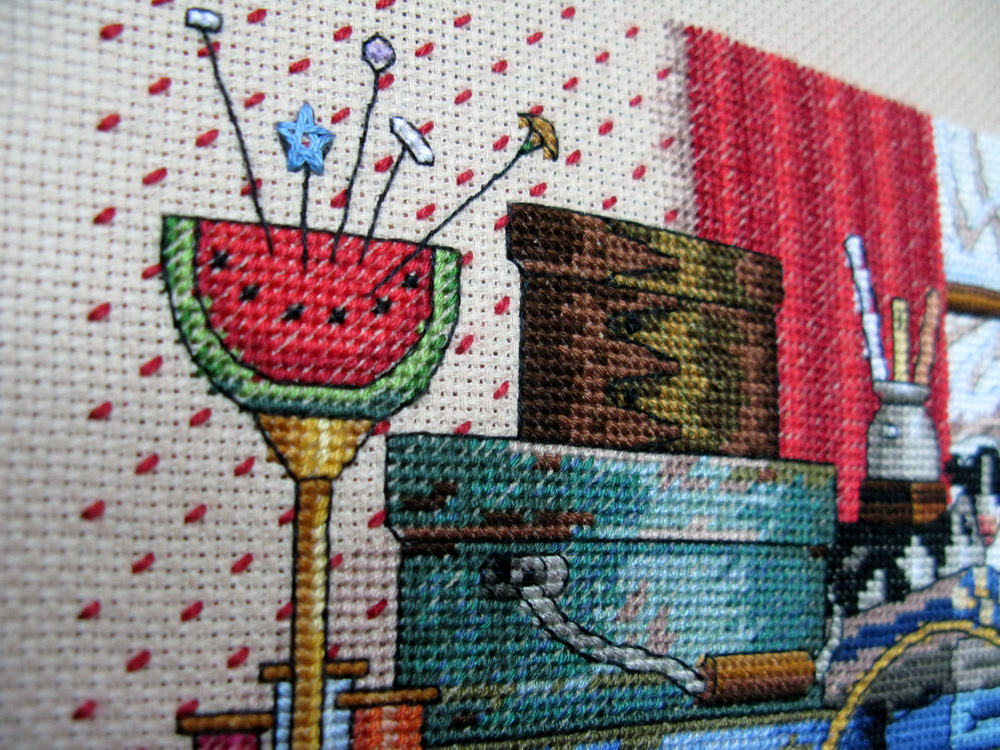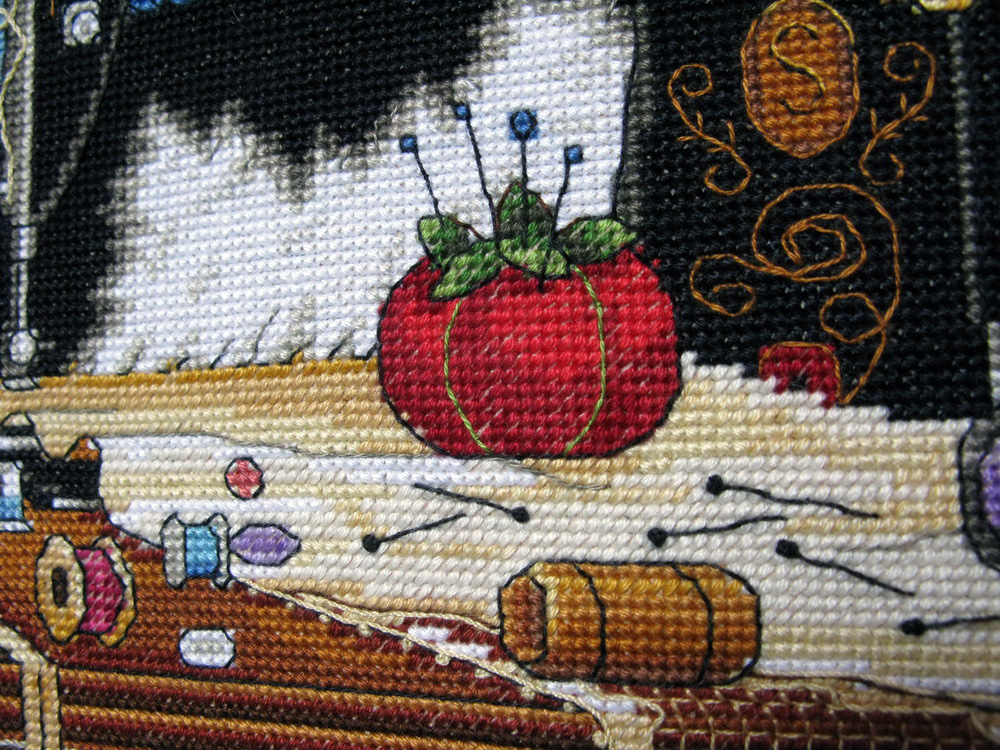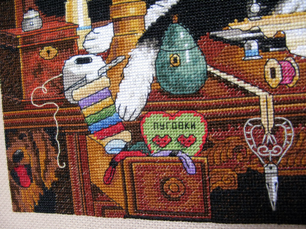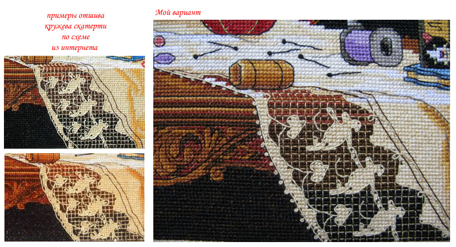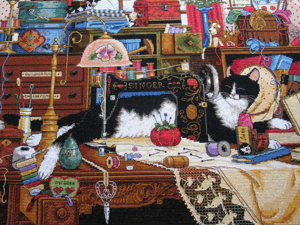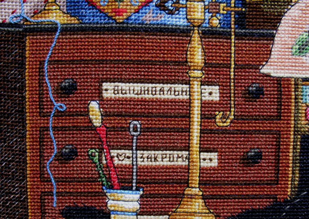30 июля 2013 девочки, дорогие! и ДжинН БОЛЬШОЕ СПАСИБО ЗА ВАШУ ПОДДЕРЖКУ! Ваши слова вселяют в меня невероятную смелость в правке схем от самого Dimensions вот стоило попробовать изменить форму прически в "Зимнем впечатлении" ... и понеслось! и всё это благодаря ВАШЕЙ оценке! вашей поддержке! и похвале! я прям горы готова свернуть в этой работе помимо мелких переделок ... я решилась на свой страх и риск попробовать изменить окраску главной героини сюжета - Мэгги! чтобы она превратилась в мою любимую домашнюю котеечку Лили Ведь она постоянно сидит, а еще вернее спитрядом с моим рукоделием шьём вместе! вышиваем вместе! вяжем вместе! даже валяем вместе! сколько я перечертила новых схем! все делала на бумаге с карандашом и , порой, была похожа на такого смайлика и вот я закончила её! Dimensions 03884 Мэгги рукодельница Лили-Рукодельница Maggie The Messmaker 36х30, аида 18, счетный крест Основной переделкой стала главная героиня все прочие переделки незначительны и почти незаметны флажок заменила на маленькую шкатулочку из серебра выкладные ниточки разложила по своему усмотрению некоторые и вовсе не стала делать.. во-первых, глаза и так "разбегаются" от деталей, а во-вторых, не хотелось запутывать Лили нитками и тянуть их через всю вышивку пуговицы из ее живота тоже вынула Лили была бы против такого вторжения )))) заодно убрала спутанный из выкладных ниток узел на скатерти надписи поменяла на свои ))) скатерть украсила французиками если кому интересно может найти 10 отличий ))) Лили довольна! Мария1981, Killwale, Aleksandr Cross-stitch и 38 других сказали спасибо Поделиться сообщением Ссылка на сообщение