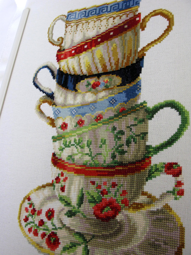 14 марта 2014 Большое спасибо, девочки!! мне очень приятно!!! целый месяц не отчитывалась просто не фотографировала процесс как-то чашку за чашкой... и вчера вечером я их закончила)) так что сразу после двух чашек... появились еще 4 и я закончила их фото с чайной чашечкой для сравнения размеров) и сбоку припёку ))) не удержалась и от переделок... Набор Dome 100108 A set of coffee cups 20х34 см в наборе аида 14 белая 14 аиду заменила на равномерку Murano 32 размер от крайних крестиков без припусков получился 18*28 и стал реалистичнее по сравнению с настоящими чашками в доме )) и чайный пакетик шить не стала Схема как песня! шьется очень легко! с ниточками сначала поборолась, а потом благодаря вашим советам, "договорилась" с ними Совёна, monstrochka, Julia80 и 33 других сказали спасибо Поделиться сообщением Ссылка на сообщение