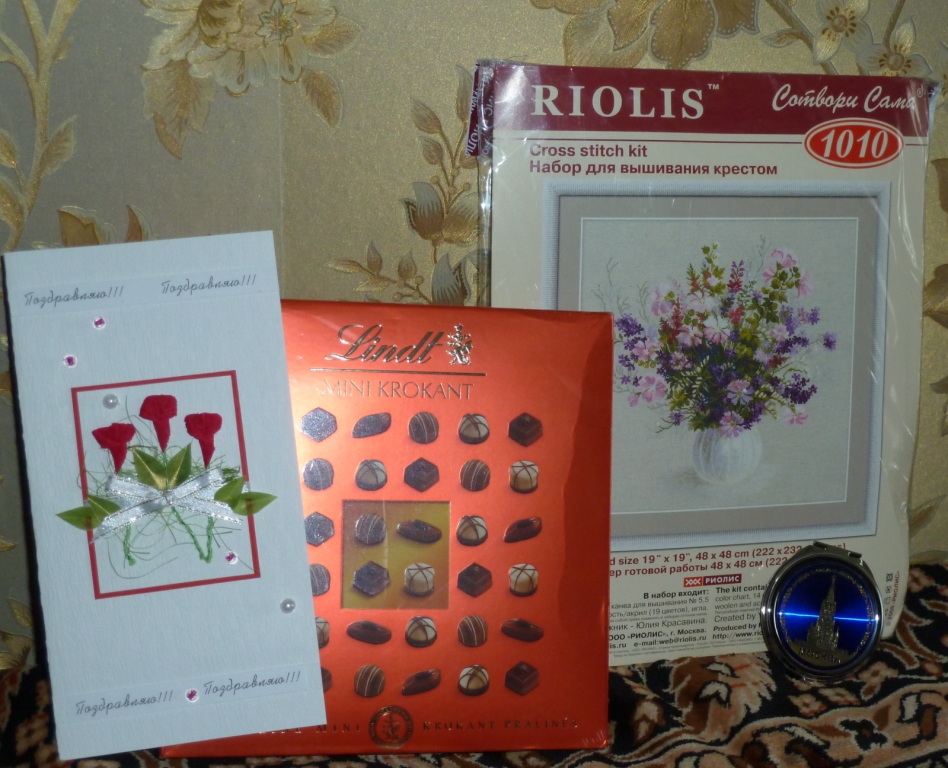 30 мая 2011 Ух тыыы! Какой подарун!!! Танюша, молодец! Такой красивый букет...представляю, как тяжко Натальиному хомяку...И всё очень красивенькое...глядя на конфетки слюнки потекли)))) А окрыточка то какая...и зеркальце...КЛАСС!!!! Natalie и Pugovka сказали спасибо Поделиться сообщением Ссылка на сообщение