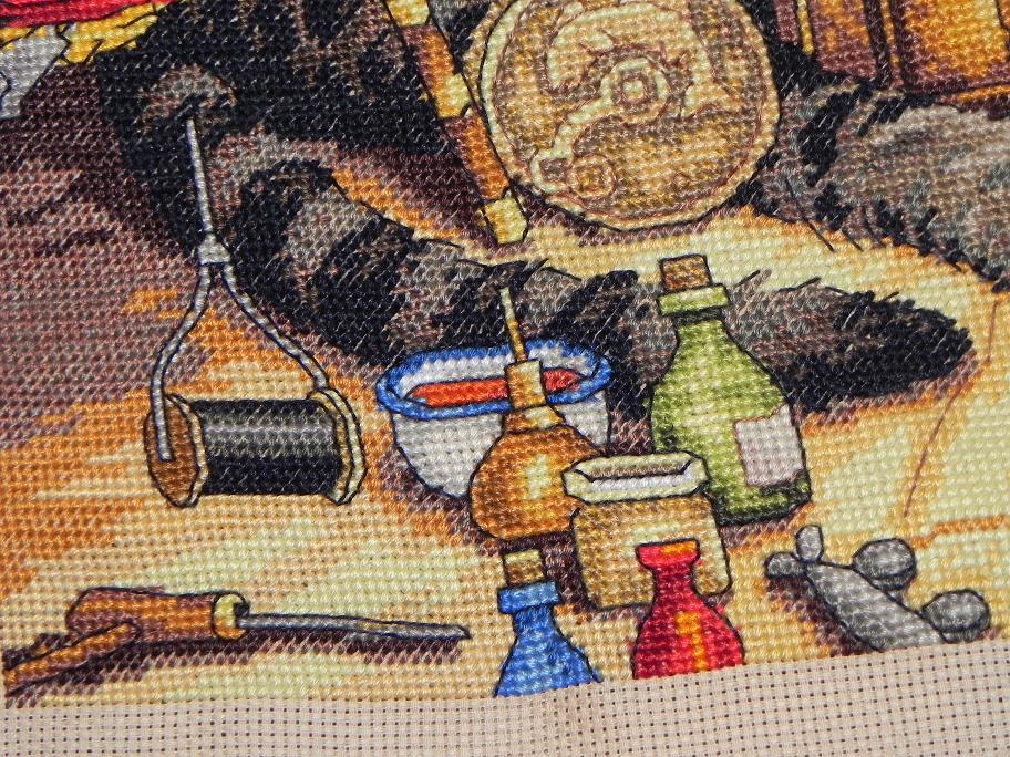19 мая 2014 Птица, Lilyana, Ginger_mama, Маняша, Nat717, Лена1973, tatusja, ирония, Каори, спасибо, девочки! Все таки у КК очень реалистичные дизайны. да, именно так у меня в закромах еще одна кошечка КК есть - такая как ты, Анют, вышивала. очень мне нравится Яна, благодаря твоему процессу и Наташиному, заказала я себе Максика. И не жалею, лампа просто роскошная Кошку хорошо оформили, рада что не стали делать дорисовку. А какой размер получился вместе с рамой? Ася, с пополнением! уверена что останешься довольной а дорисовка тебе не нравится в принципе или именно здесь не подходит? размер с рамой, если не ошибаюсь 57х60см. я даже не рискнула повесить ее на стену, поставила работу на стол у окна, он у нас пустует, иногда (очень редко) швейная машинка там стоит, а так этот стол для Муси - любит на нем поспать девочки, до завершения Макса еще очень далеко там, так сказать, второй этаж бардак полнейший. вроде схема простая, но я все время откладывала этот кусок на потом кто хочет найти розовый оттенок - обратите внимание на цвет стола справа и слева от цветных бутыльков (от красного справа и от синего слева должен быть одинаковый цвет) Поделиться сообщением Ссылка на сообщение